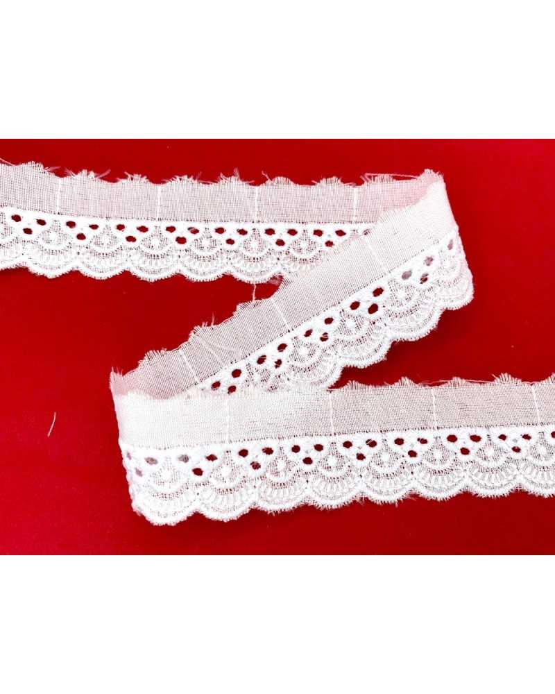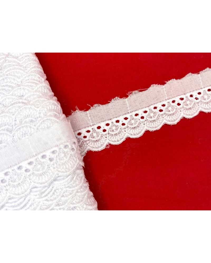 10 metri Pizzo sangallo art. 4BF19A altezza 2,5cm Passamaneria San gallo Bianco Ricamo Smerlato balza unica