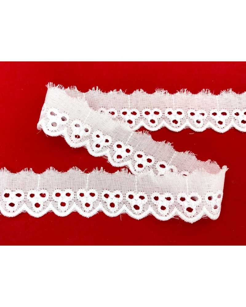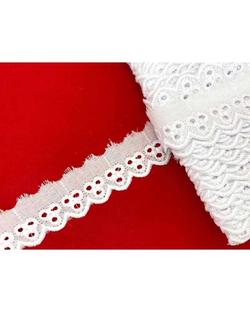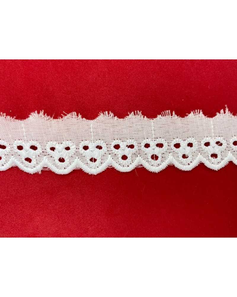 10 metri Pizzo sangallo art. 4BF19A altezza 2,5cm Passamaneria San gallo Bianco Ricamo Smerlato balza unica