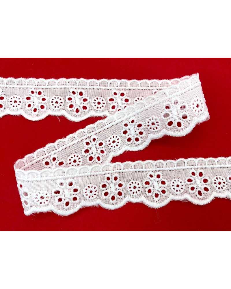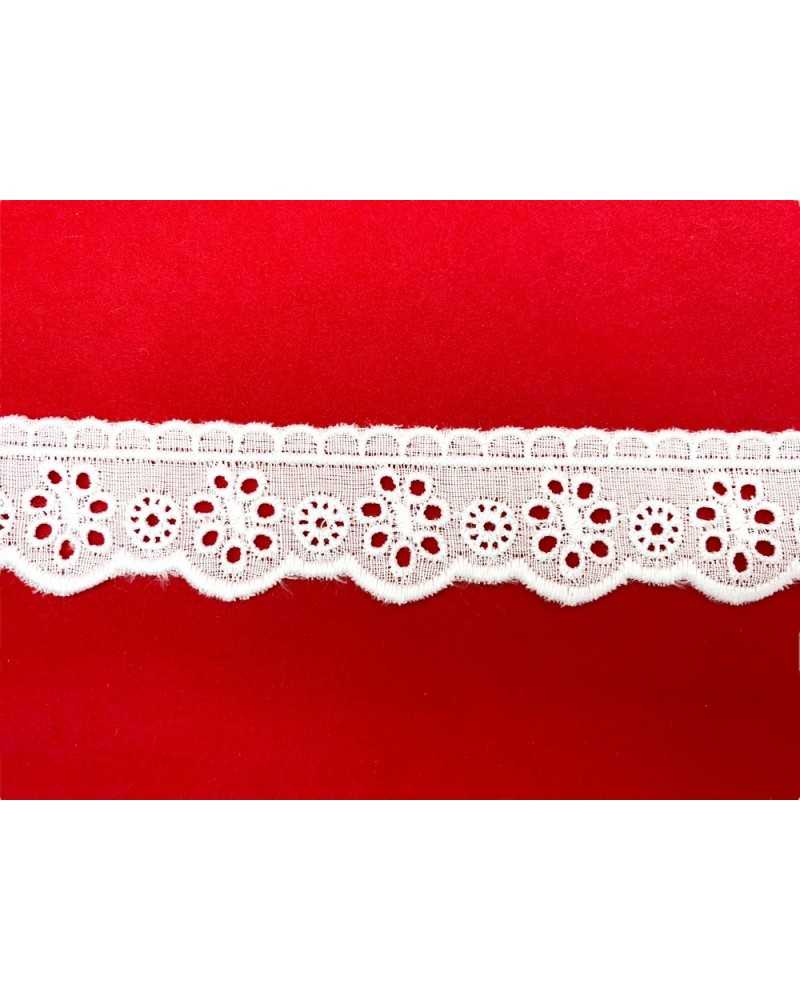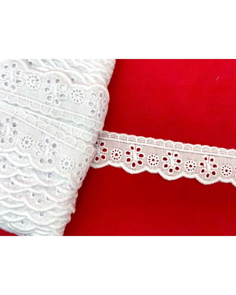 10 metri Pizzo sangallo art. 4BF19A altezza 2,5cm Passamaneria San gallo Bianco Ricamo Smerlato balza unica