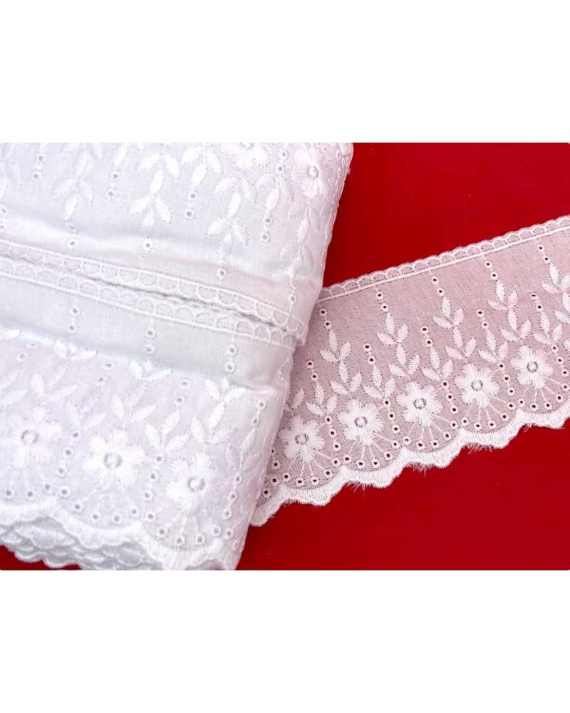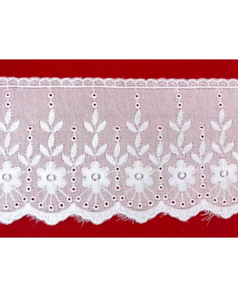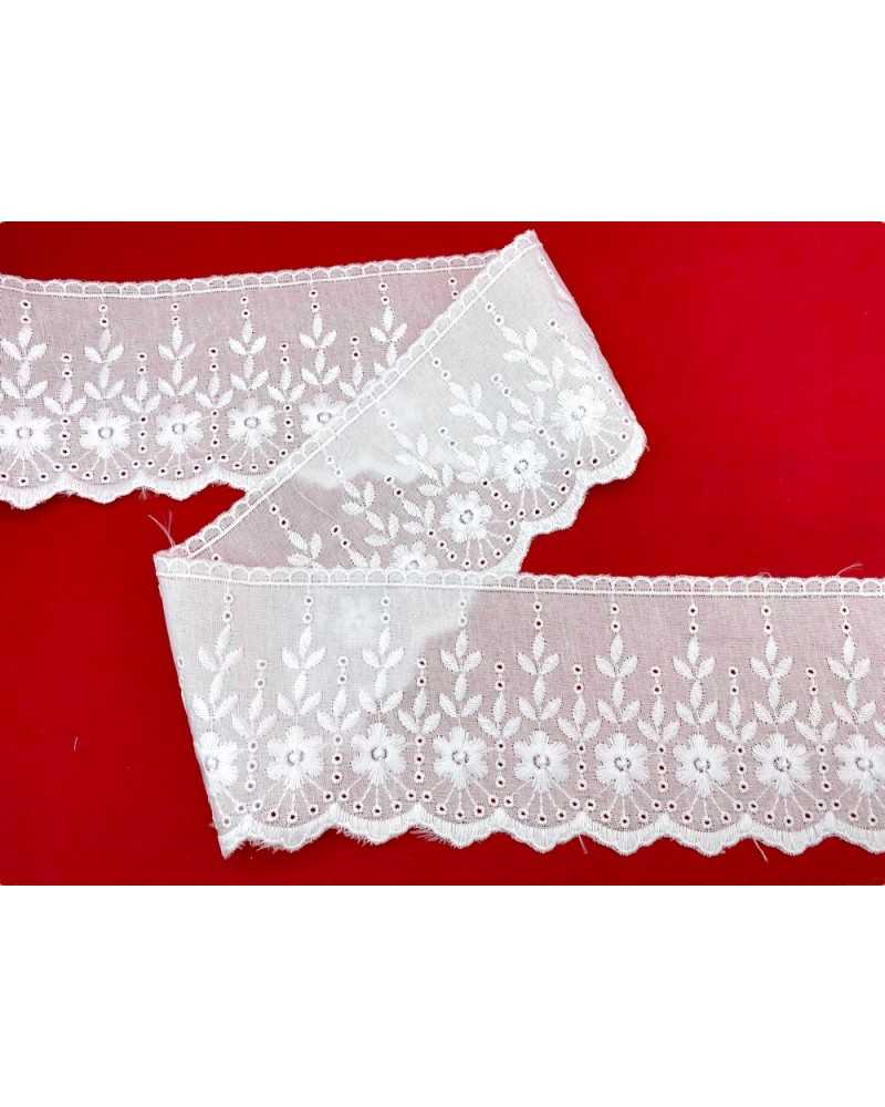 10 metri Pizzo sangallo art. 4BF06G altezza 7,5cm Passamaneria San gallo Bianco Ricamo Fiore Smerlato balza unica