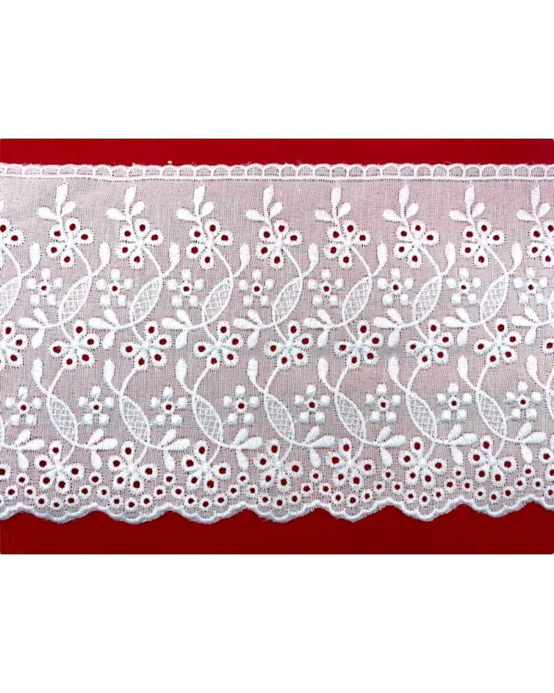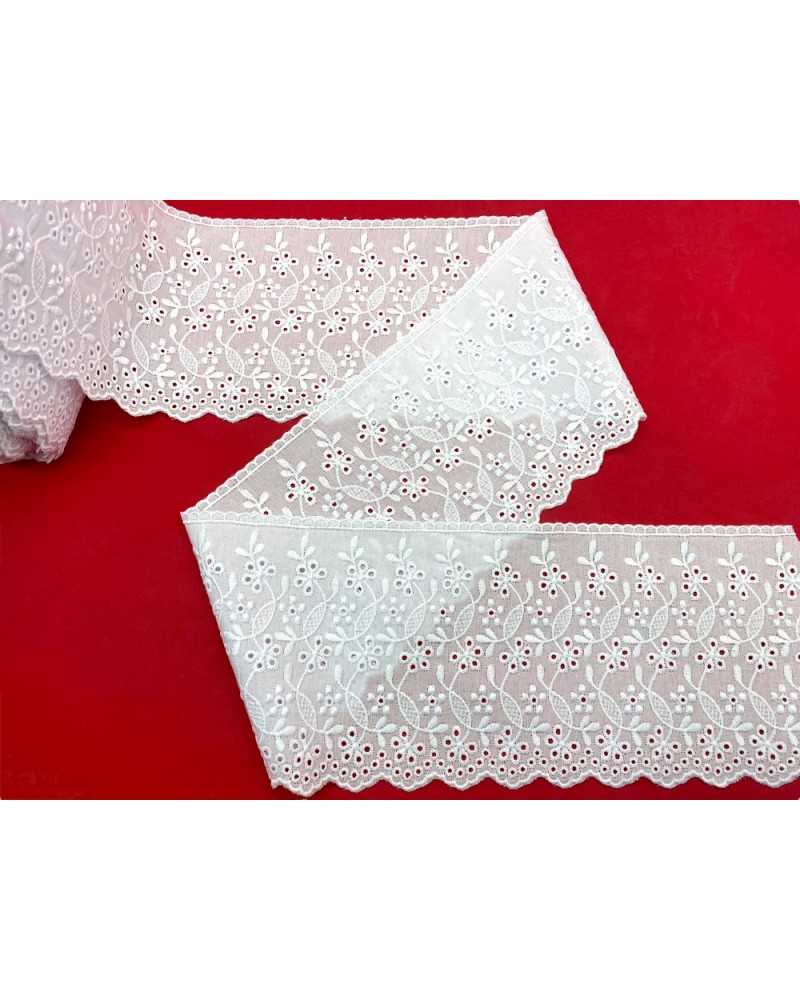 10 metri Pizzo sangallo art. 4BF06G altezza 7,5cm Passamaneria San gallo Bianco Ricamo Fiore Smerlato balza unica