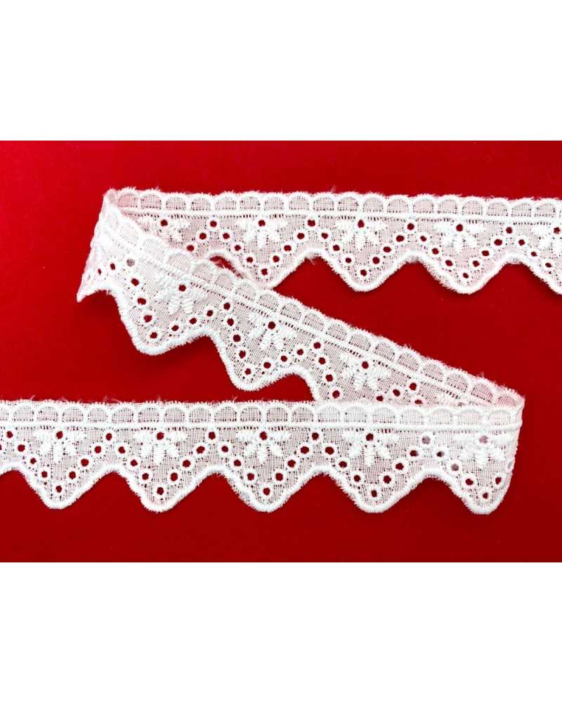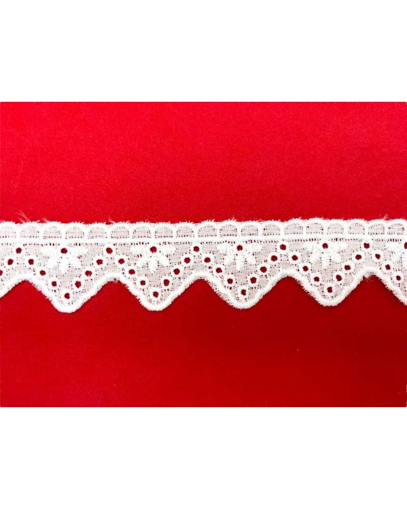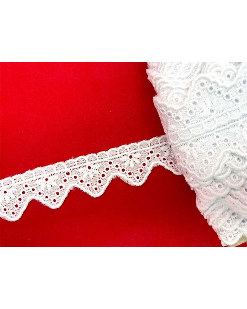 10 metri Pizzo sangallo art. 4BF43A altezza 2,5cm Passamaneria San gallo Bianco Ricamo Smerlato balza unica