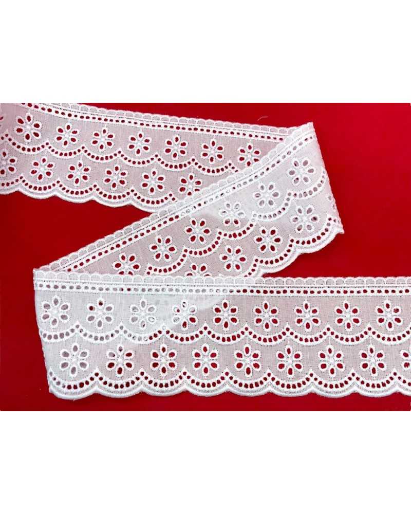 10 metri Pizzo sangallo art. 4BF47 altezza 7cm Passamaneria San gallo Bianco Ricamo Fiore Smerlato balza unica
