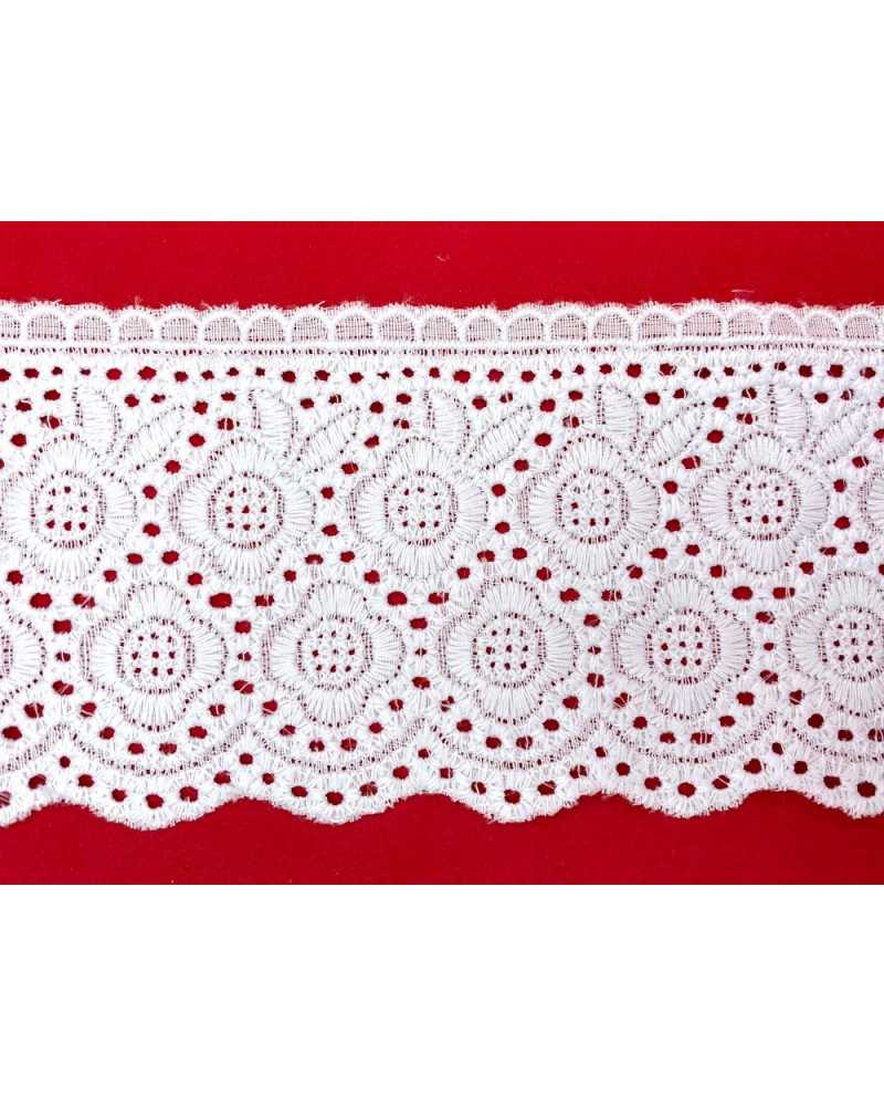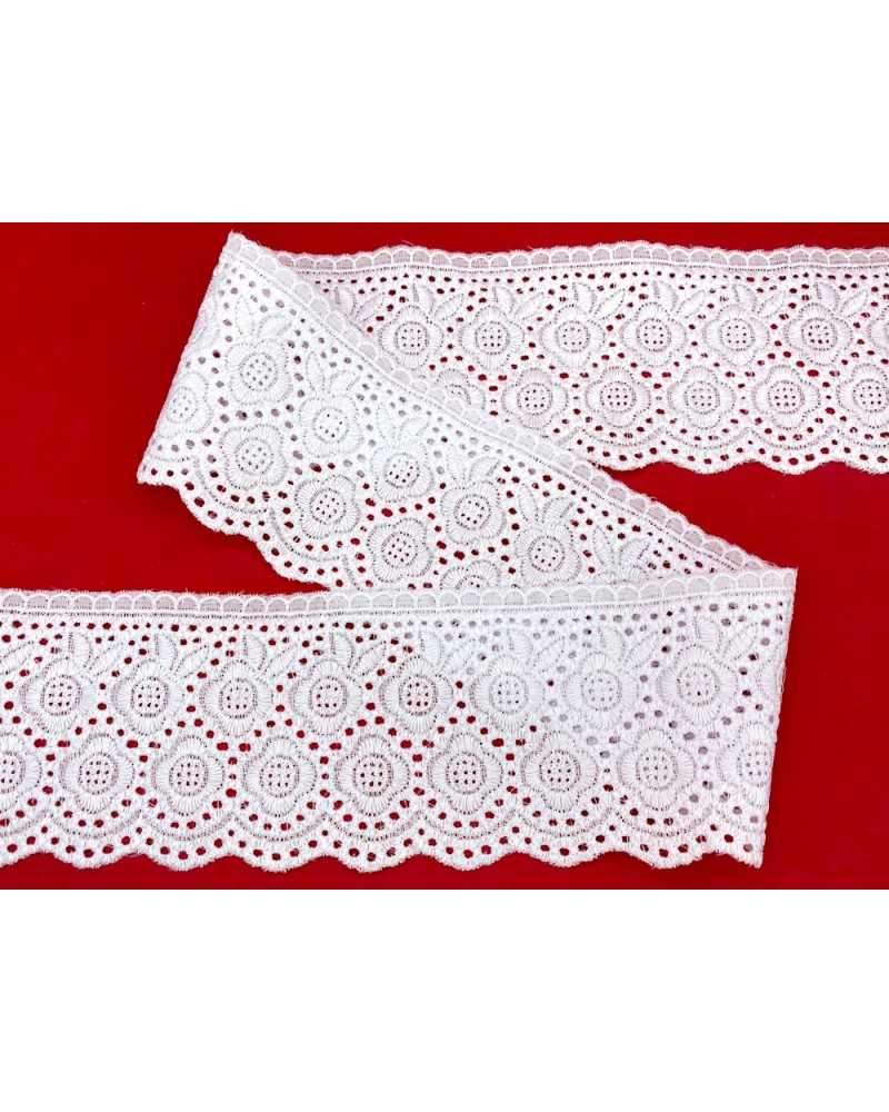 10 metri Pizzo sangallo art. 4BF54G altezza 7,5cm Passamaneria San gallo Bianco Ricamo Fiore Smerlato balza unica