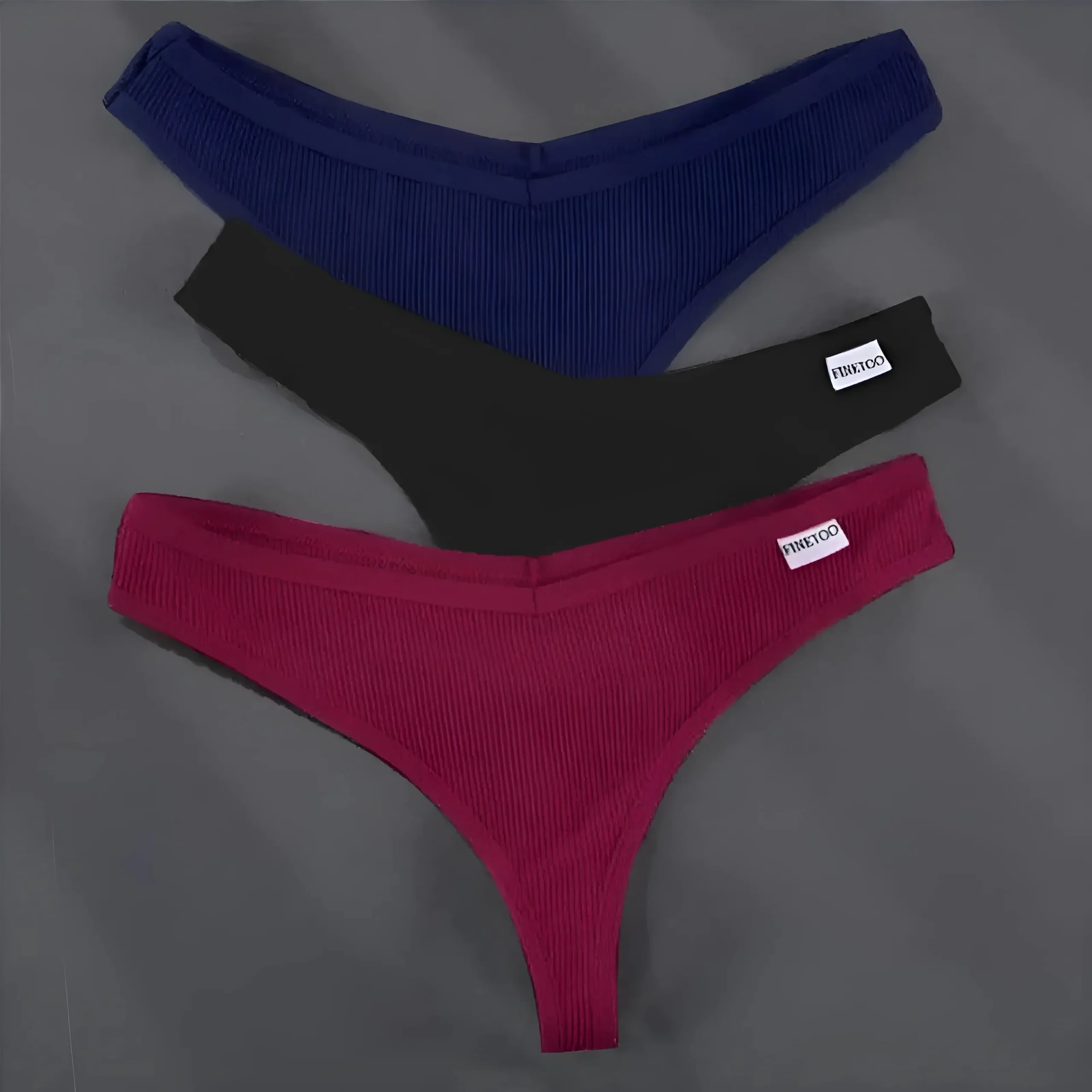 Confezione da tre di perizomi da donna. Colori: blu navy, nero e bordeaux. Tessuto a coste. Ogni paio ha un piccolo etichetta del marchio. Eleva il tuo comfort quotidiano con la nostra lussuosa confezione da tre di perizomi da donna, disponibili in un magnifico blu navy, un classico nero e un ricco bordeaux. Concediti il […]
