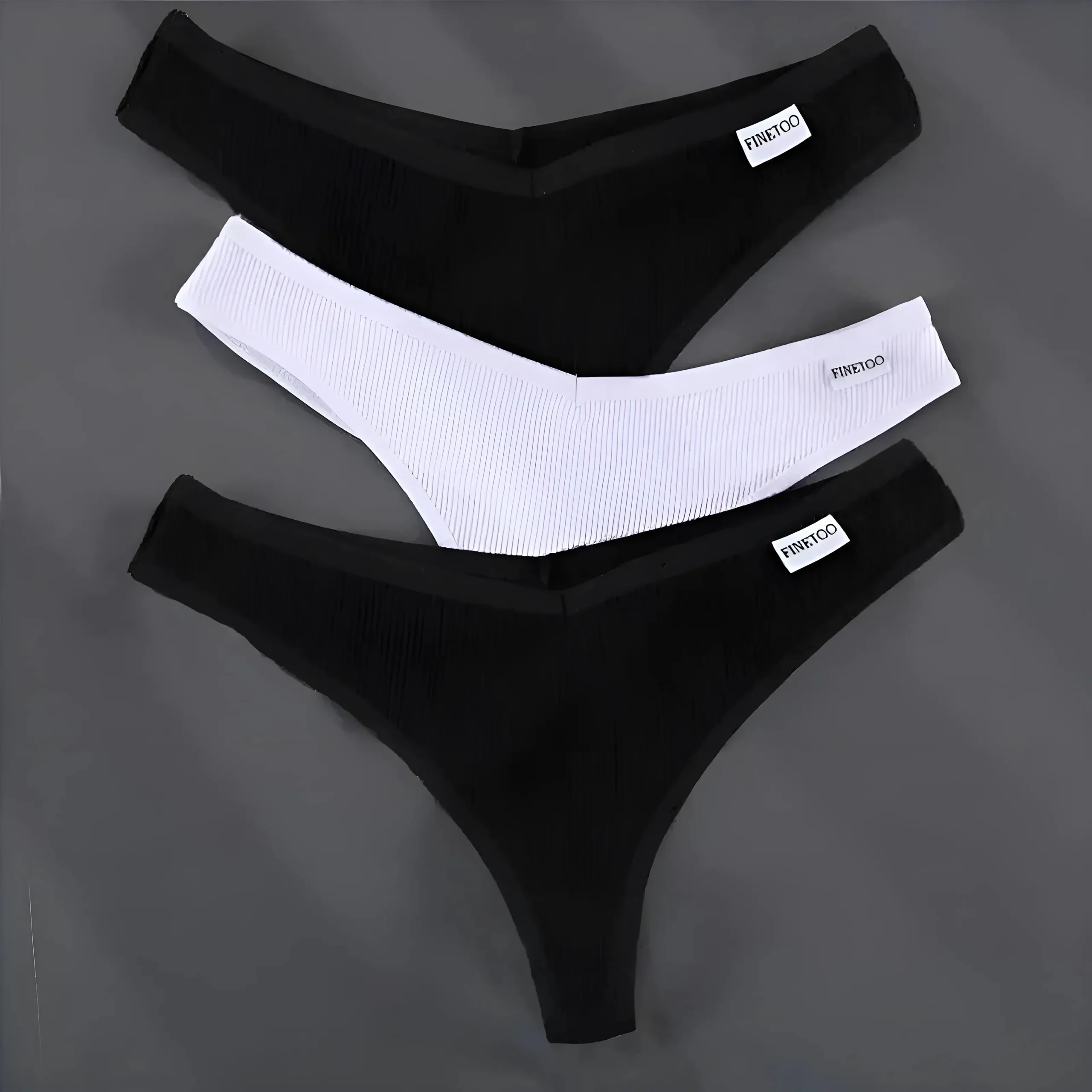 Tre paia di perizomi da donna. Due paia e un paio. Texture a coste sul tessuto. Il pacco da 3 contiene due pezzi neri e uno bianco. Eleva il tuo comfort quotidiano con i nostri lussuosi perizomi, disponibili nei classici nero e bianco. Concediti tre paia straordinari che abbracciano le tue curve e ti fanno […]