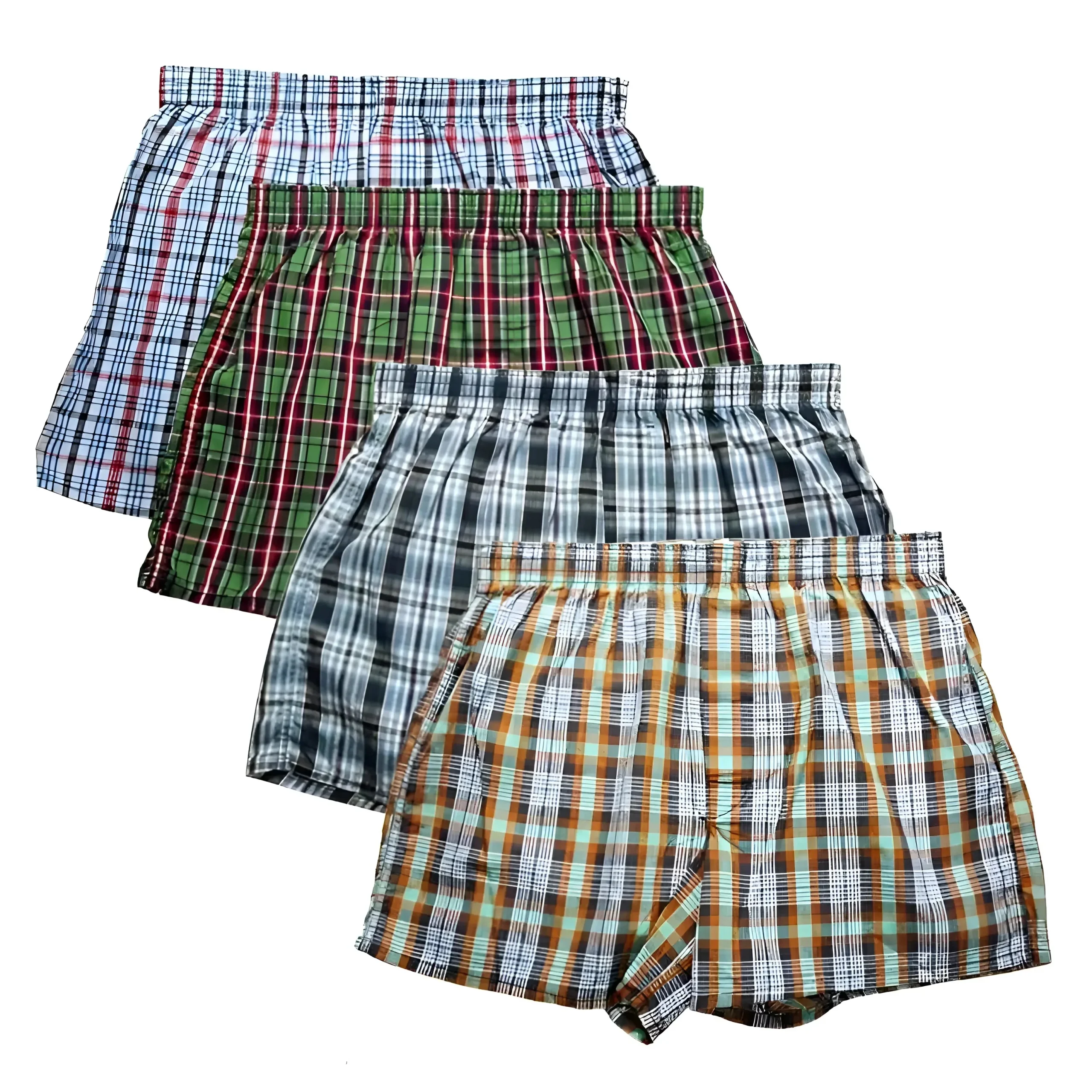 Eleva il suo comfort con il nostro elegante pacco da quattro boxer da uomo, caratterizzati da una varietà di modelli a quadri accattivanti in colori rilassanti. Fai un regalo a lui con il perfetto equilibrio tra stile e comfort—perché merita di sentirsi al meglio ogni giorno!