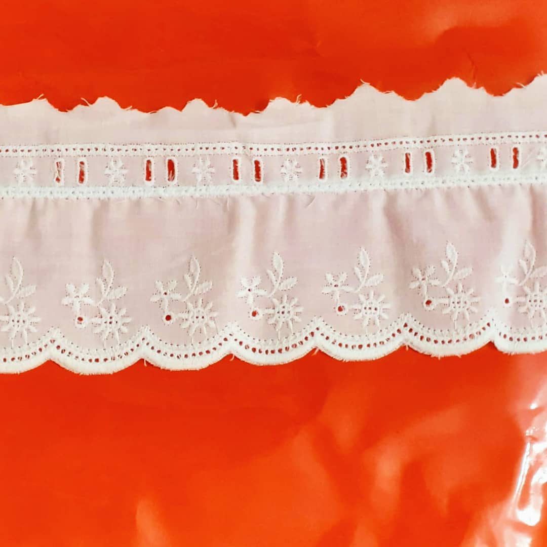 8 metri – Pizzo sangallo arricciato con passanastro art. 1359 altezza 8cm – passamaneria san gallo smerlato