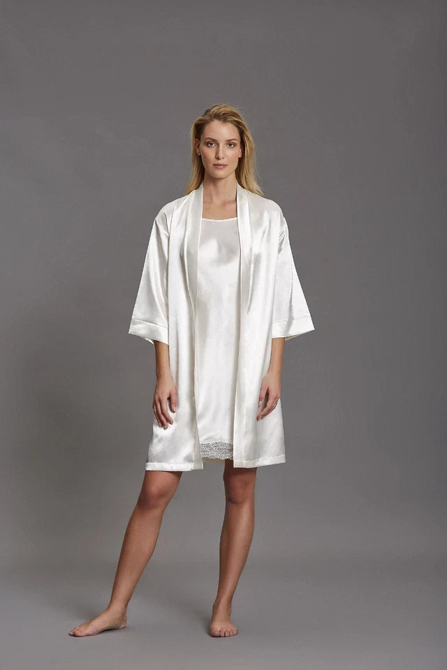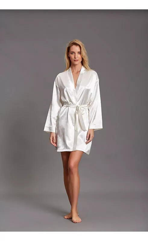 Andra – Kimono liscio manica lunga in raso effetto seta da donna Andra 862 vestaglia lingerie matrimonio sposa