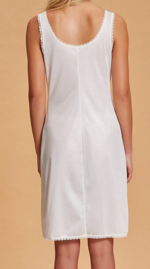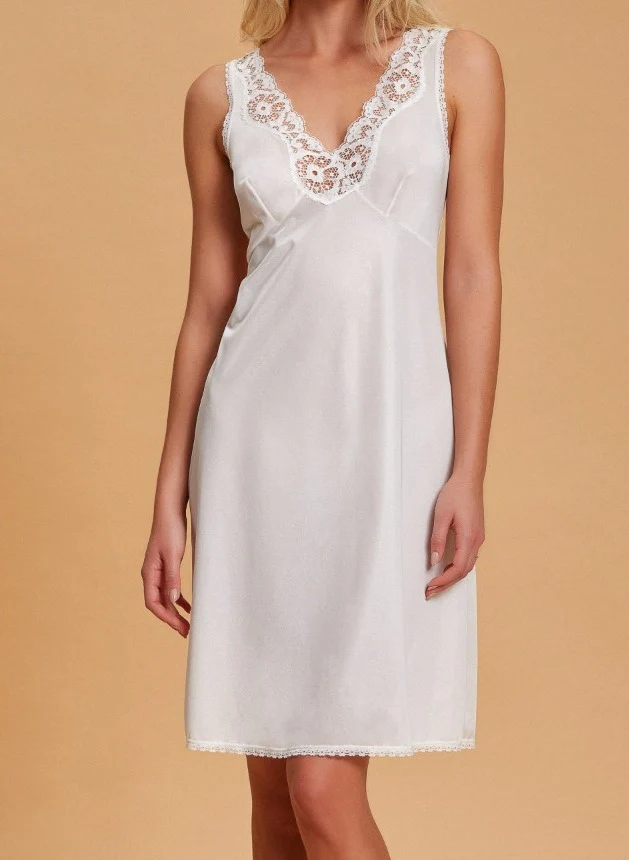Andra – Sottoveste classica spalla larga scollo V da donna con ricami in pizzo lingerie tinta unita art 84