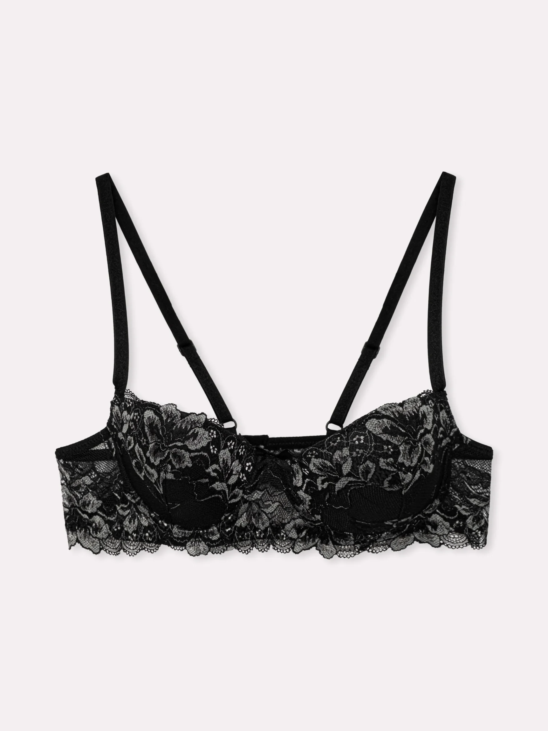 Reggiseno balconcino che esprime sensualità ed eleganza grazie al suo raffinato pizzo floreale ricamato, che avvolge le coppe con un effetto sofisticato e femminile. Il ferretto sotto il seno offre un sostegno perfetto e valorizza il décolleté con una forma armoniosa e naturale. Il bordo smerlato e la fascia sottoseno in pizzo trasparente aggiungono un tocco romantico, mentre le spalline sottili regolabili garantiscono una vestibilità su misura. Perfetto per chi desidera un intimo seducente e raffinato, ideale per ogni occasione speciale.
