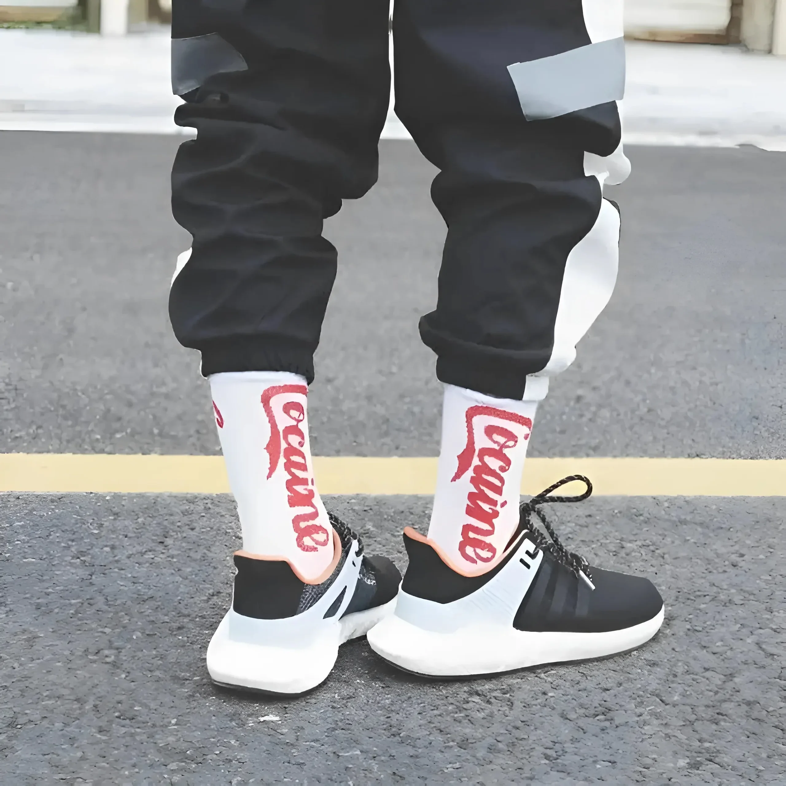 Eleva il tuo stile con le nostre audaci calze “cocaine”, il complemento perfetto per le tue sneakers bianche e nere preferite. Abbraccia il tuo tocco unico e fai una dichiarazione—prendi le tue in bianco classico o nero oggi stesso!