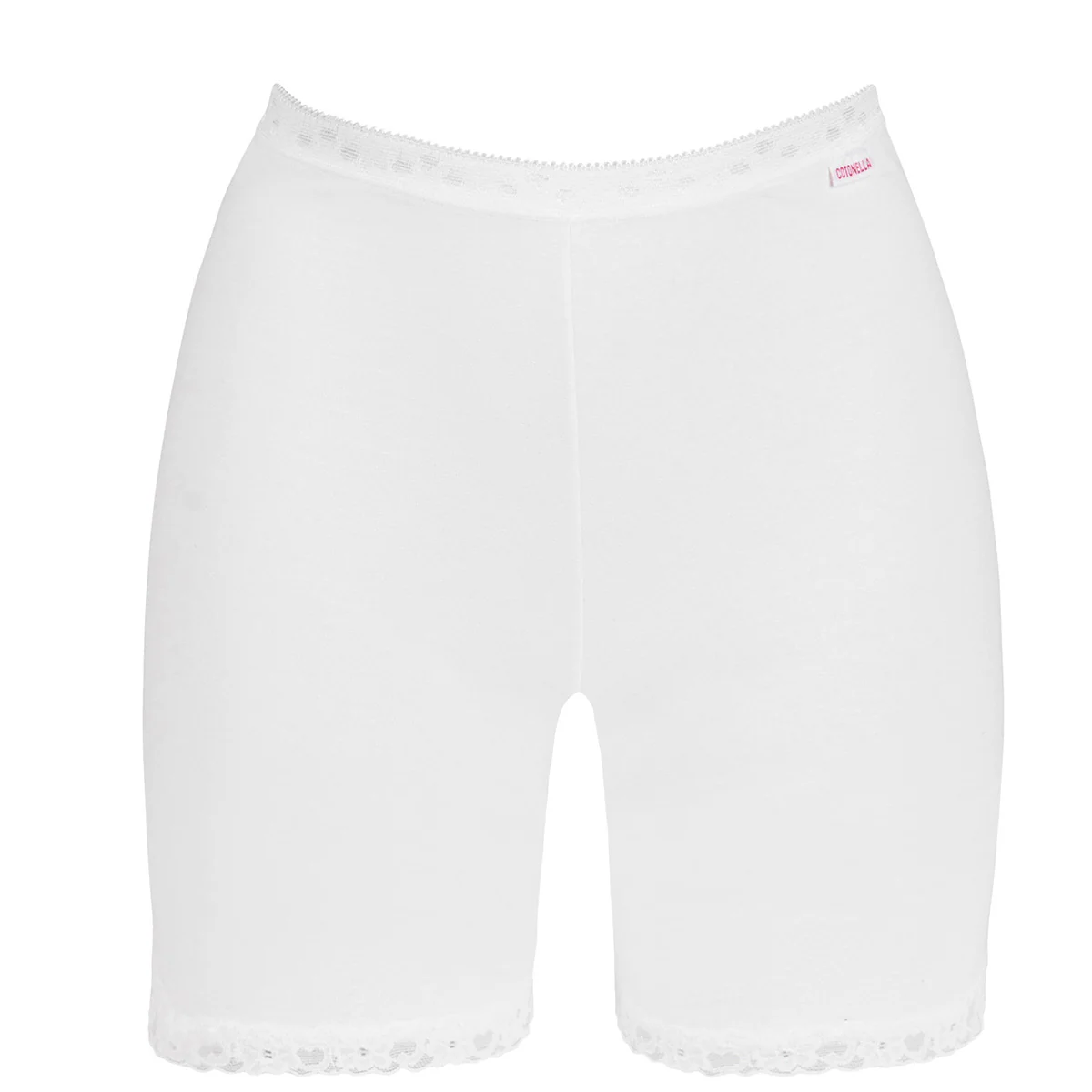 Slip con gamba lunga, culotte con gambe da donna, slip vita alta in cotone, slip tassello antibatterico, anche gli elastici sono in cotone. Colore disponibile: bianco e nero. Taglie disponibili: 3/(M), 4/(L), 5/(XL), 6/(XXL), 7/(XXXL), 8, 9 e 10. Composizione del prodotto: 95% cotone e 5% elastan. Marca: “ Cotonella ”. Codice: 8018.