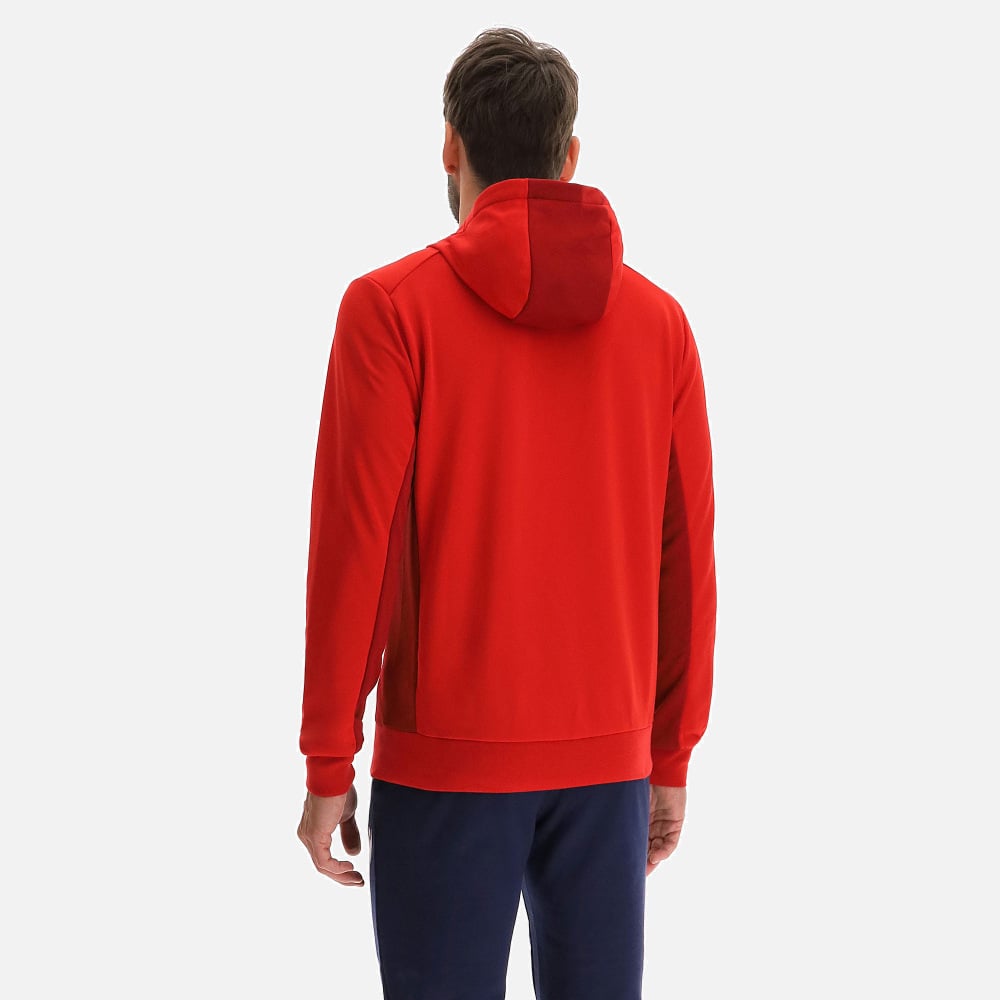 Felpa cappuccio con tasca a marsupio in Poly Diagonal, tessuto dalla particolare trama diagonale che conferisce elasticità e tenuta termica. Spalle e fianchi di colore tono su tono.