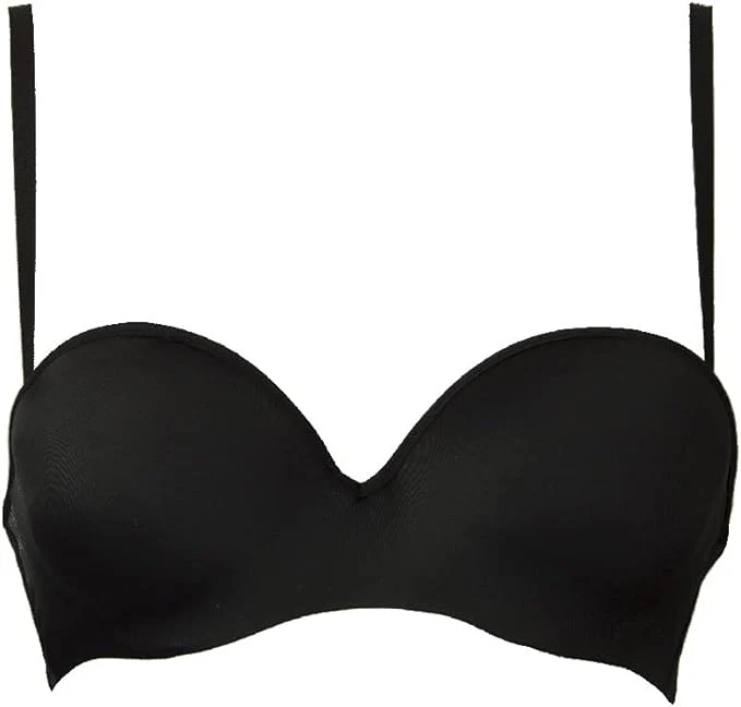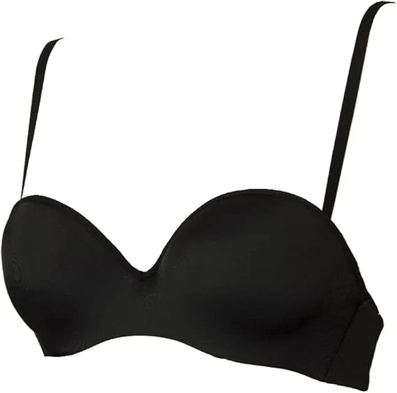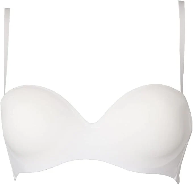 Reggiseno fascia, con ferretto in microfibra con imbottitura preformata graduata, spalline sottili staccabili, chiusura sul retro con gancetto e coppa B. Colori disponibili: bianco, pelle e nero.