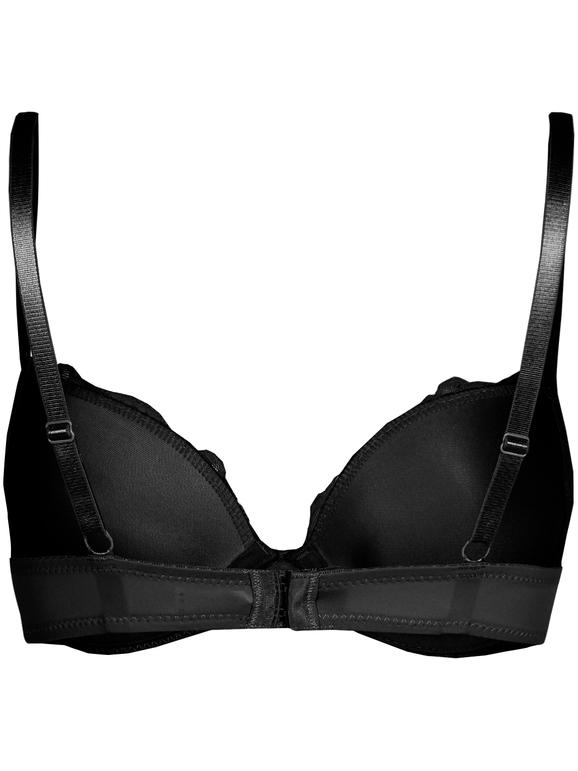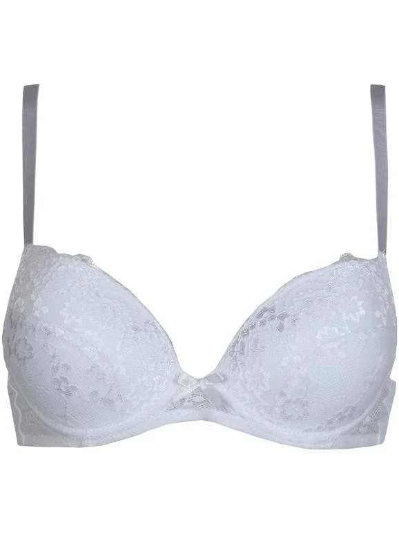 Reggiseno in pizzo balconcino push up con gel, con ferretto in microfibra con imbottitura preformata, spalline sottili, coppa B. Colori disponibili: bianco, pelle e nero.
