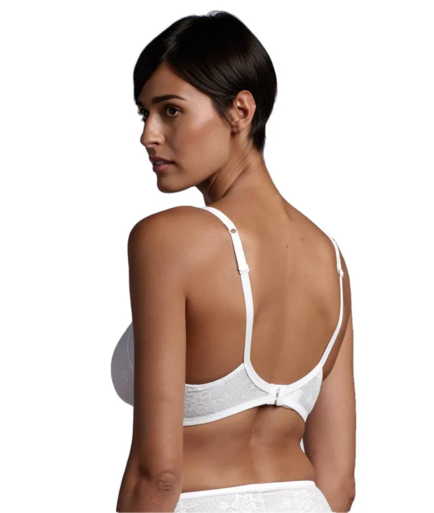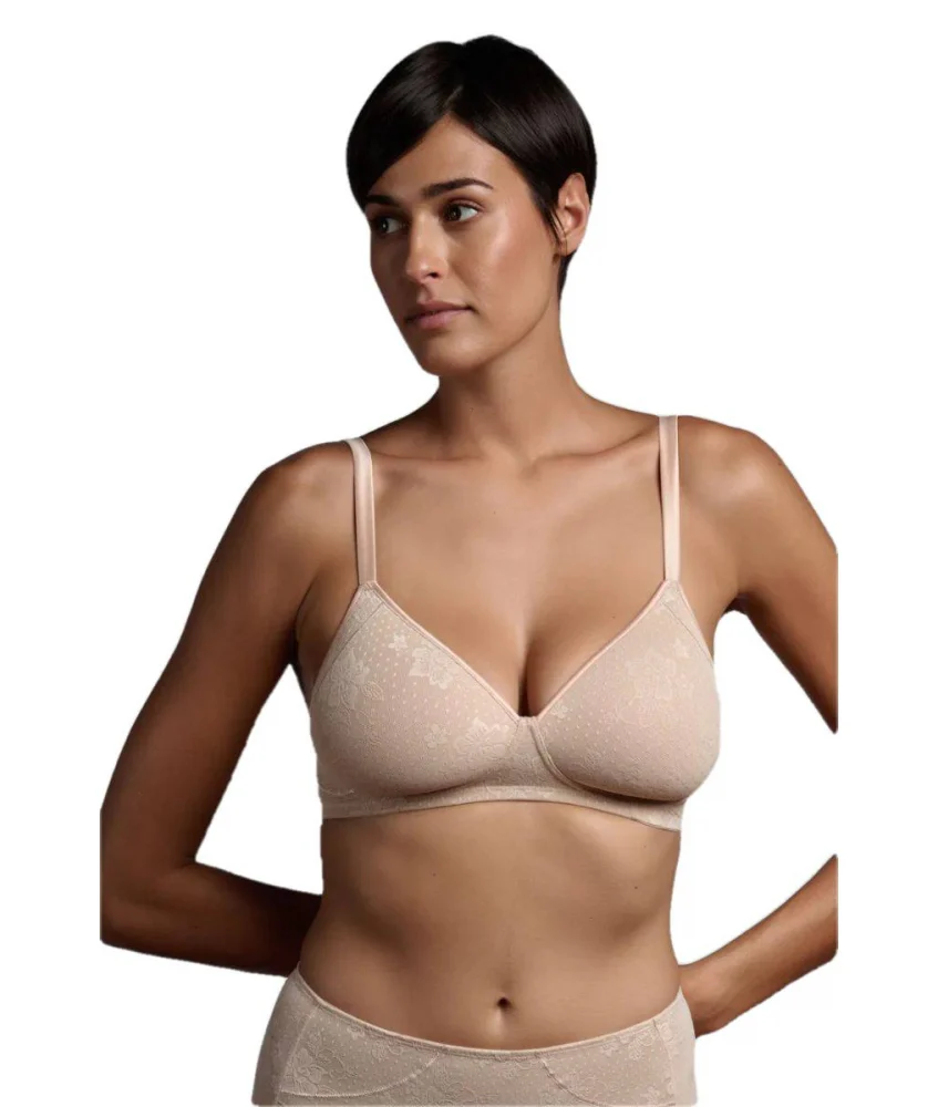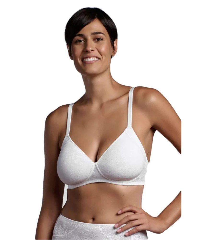 Reggiseno leggermente imbottito e senza ferretto, coppe in tessuto spacer, traspiranti, indeformabili, morbide e leggere, comode ali laterali per un perfetto sostegno, gancio di chiusura a 4 posizioni per una maggiore vestibilità, coppa C, linea Belseno Bouquet, originale e nuovo di fabbrica. Colori disponibili: bianco, nero e nudo. Taglie disponibili: 3, 4, 5 e 6. Composizione del prodotto: 63%poliestere, 22%poliammide e 15%elastan. Marca: “Lepel”. Codice: 380.