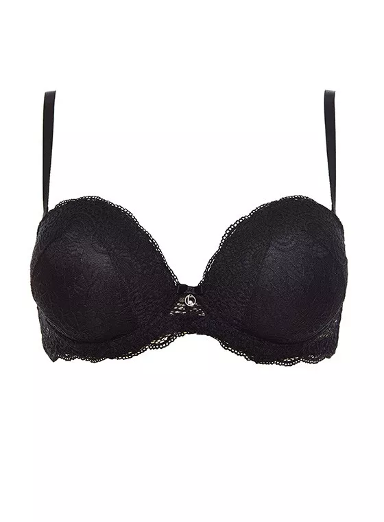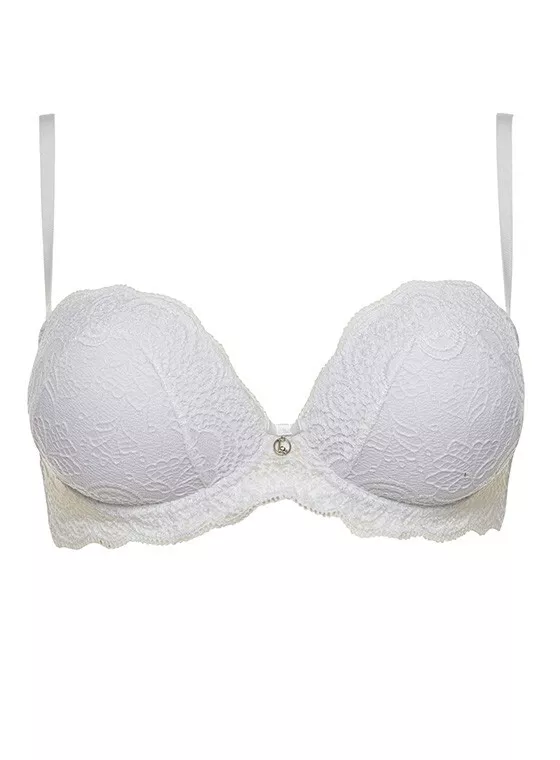 Lormar – Reggiseno da donna fascia balconcino super push up più 2 taglie Double Extra con pizzo con ferretto chiusura sul retro con scollo profondo imbottito senza spalline sfilabili staccabili