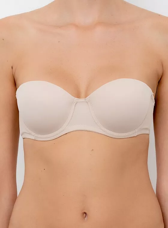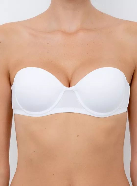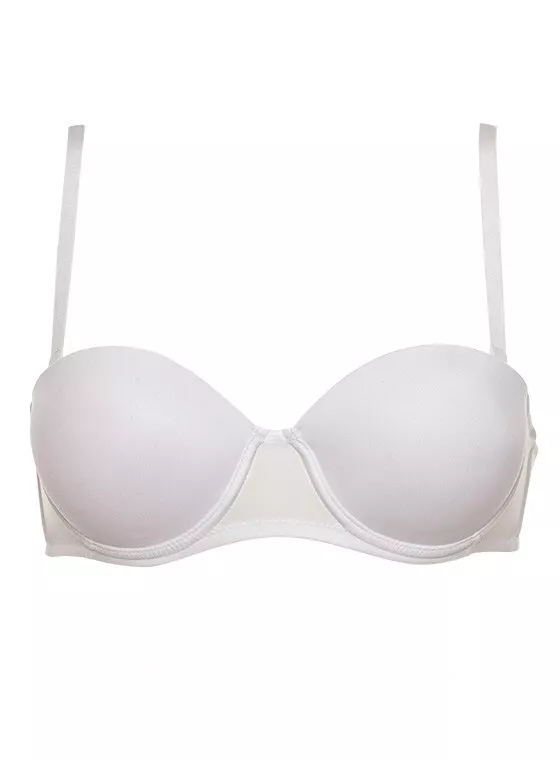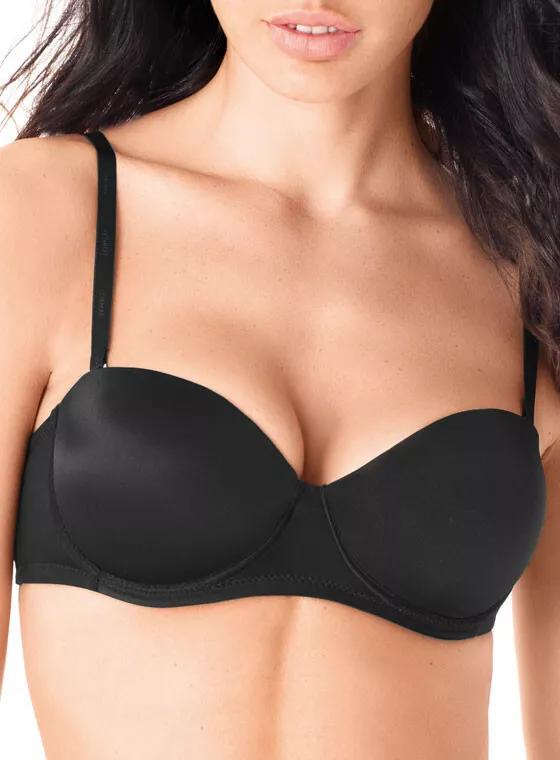 Reggiseno fascia, preformato imbottito con ferretto, con coppe graduate e spalline staccabili, bordo siliconato, stecca laterale, coppa B. Colori disponibili: bianco, nero e nudo. Taglie disponibili: 1, 2, 3, 4 e 5. Composizione del prodotto: 88%poliammide e 12%elastan (tessuto); 65%poliestere e 35%cotone (coppa, tessuto interno). Marca: “Lormar”. Codice: Pura.