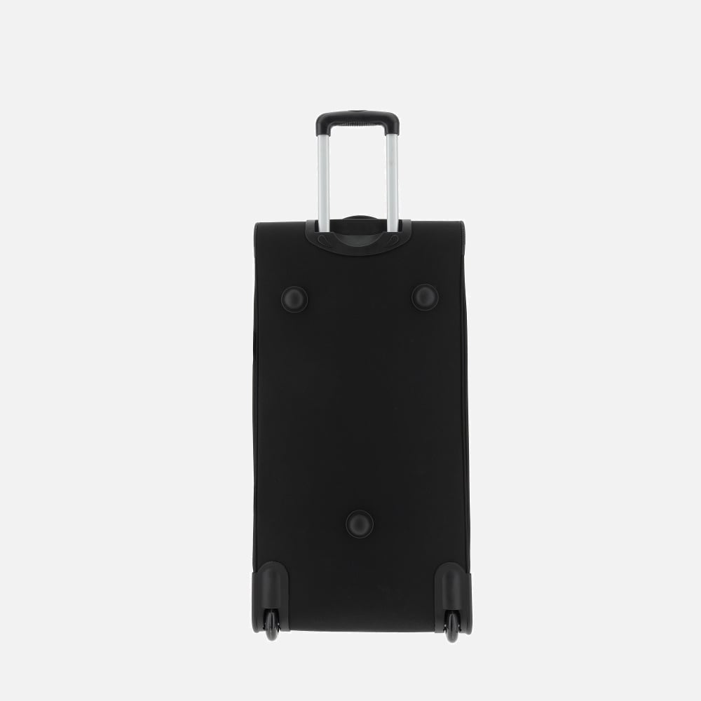 Trolley portamute con fondo semirigido in tessuto poliestere ultraresistente. Manico retraibile. 2 ruote e 2 piedini che consentono l’appoggio in posizione verticale. Fibbie laterali regolabili. Maniglia frontale per facilitare la movimentazione in orizzontale. 3 aree personalizzabili sulla parte frontale: tasca superiore per logo Club e aree adiacenti alla maniglia per sponsor.