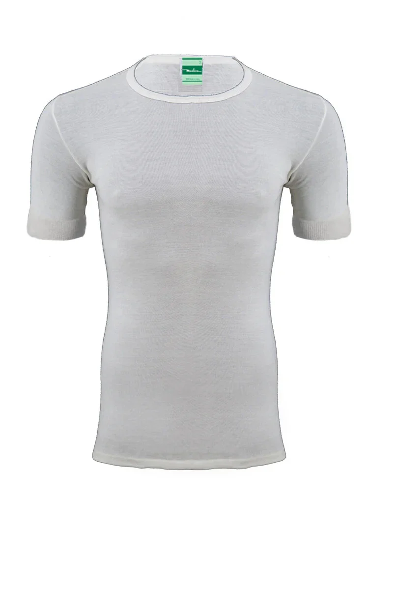 Madiva – Maglia girocollo da uomo mezza manica lana vergine vesuvio T-SHIRT intimo tubolare pesante trattamento irrestringibile canottiera manica corta