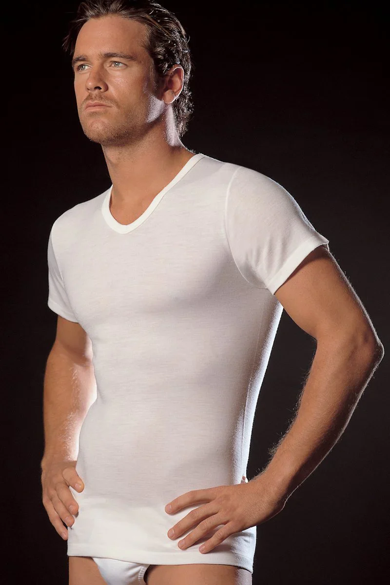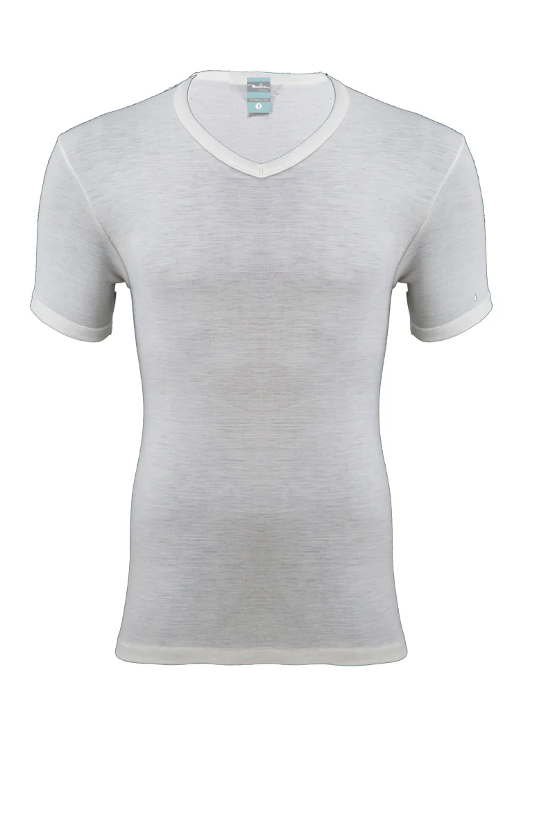 Madiva – Maglia scollo a V da uomo mezza manica lana cotone T-SHIRT collo punta intima Domenico manica corta
