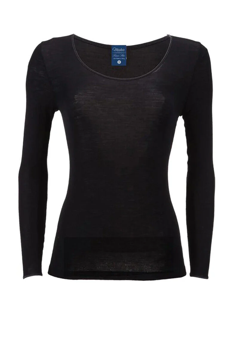 Madiva – Maglia scollo rotondo da donna manica lunga lana seta Madiva Sara maglietta intima collo tondo bordo raso liscio