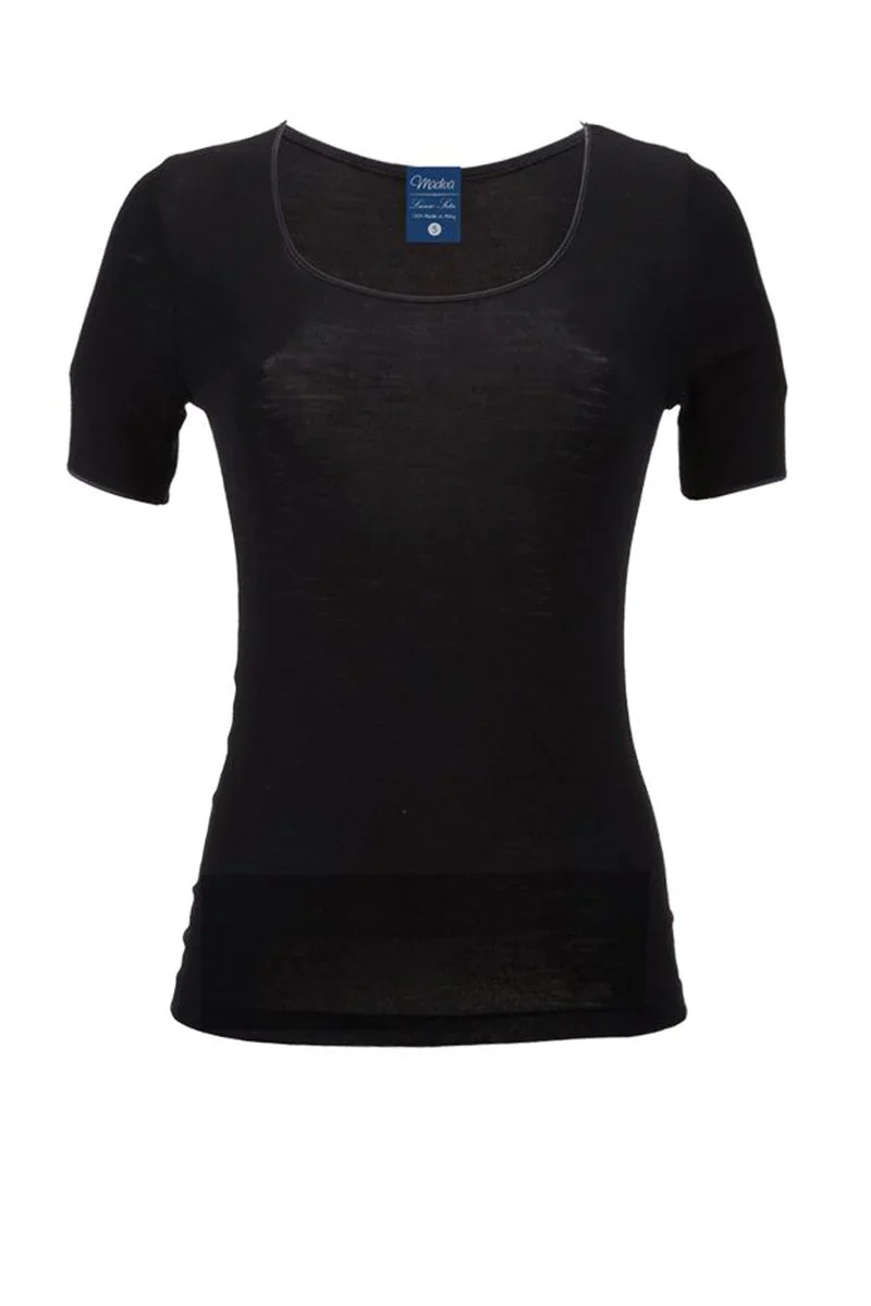 Madiva – Maglia scollo rotondo da donna mezza manica lana seta Sara maglietta intima collo tondo bordo raso liscio