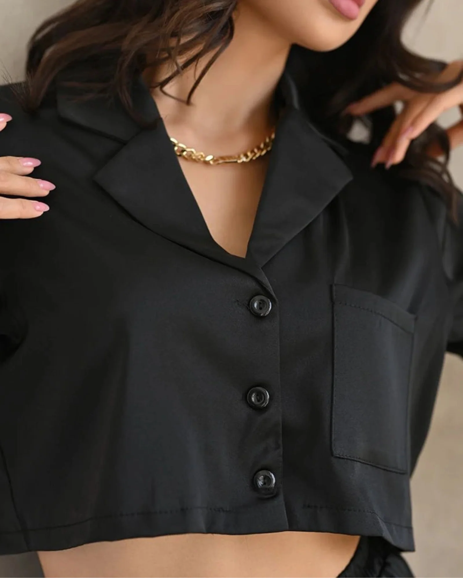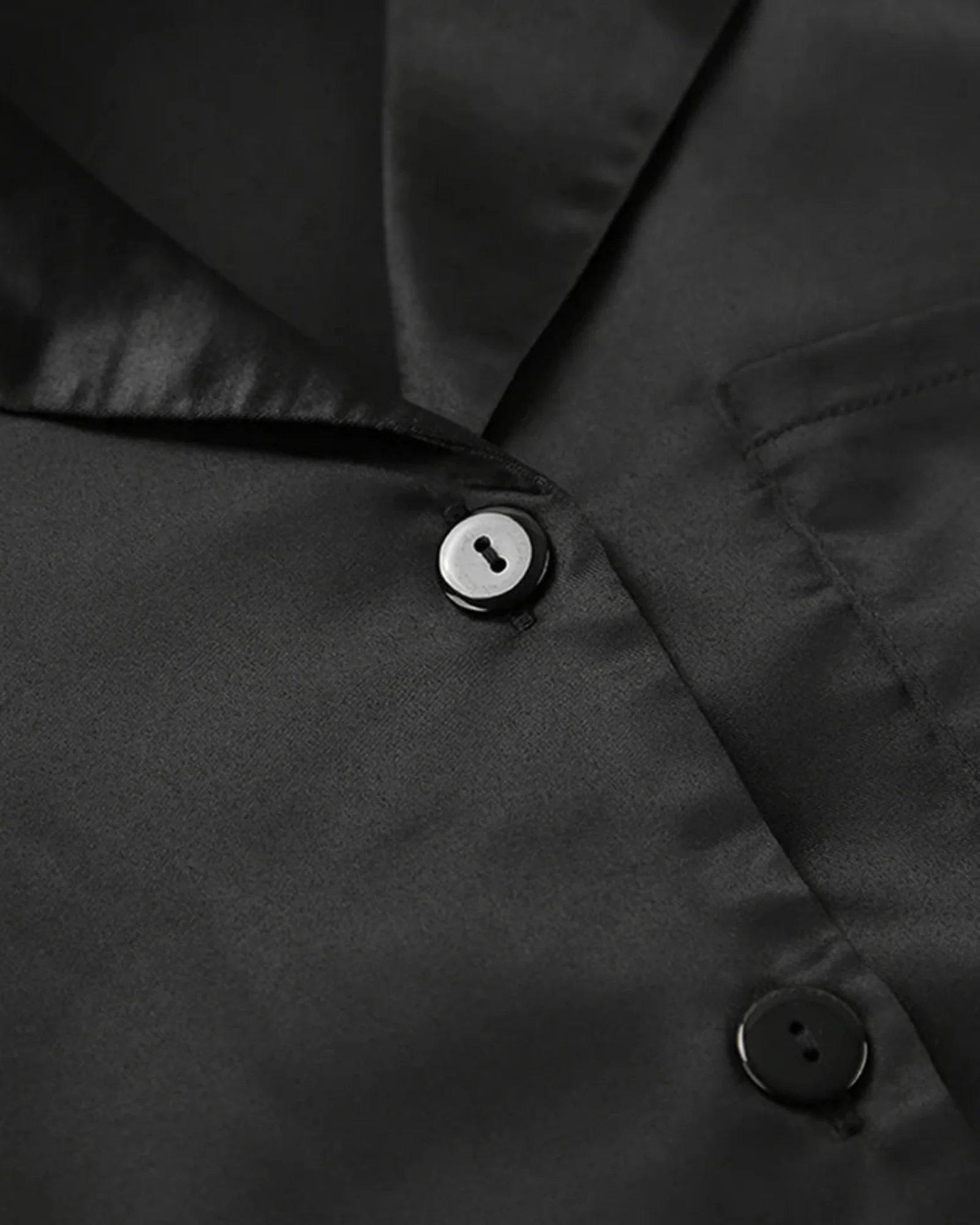 Trasportati in un mondo di comfort ed eleganza con questo pigiama. Il design corto e morbido ti fa sentire a tuo agio, mentre il materiale satinato avvolge delicatamente il tuo corpo, esaltando la sua bellezza naturale. Il colletto elegante aggiunge un tocco di classe, e la vita elastica garantisce una vestibilità perfetta.