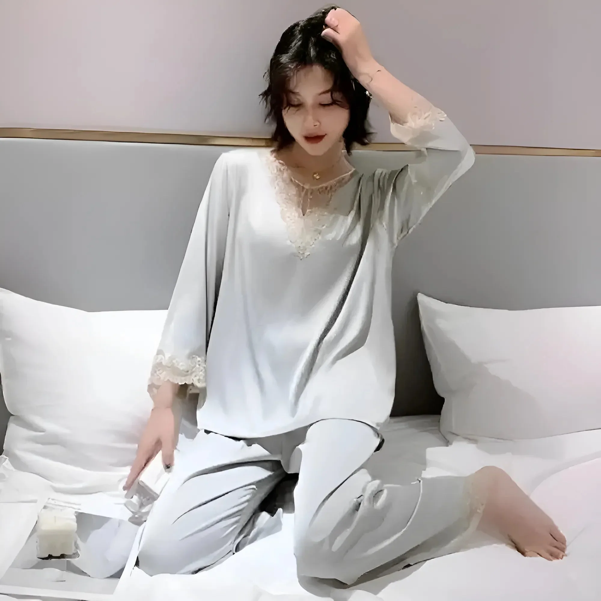 Tessuto in satin Maniche lunghe con bordo in pizzo Dettagli in pizzo sul collo e sui polsini Vestibilità comoda con caviglie elasticizzate Colori disponibili: Blu navy, Grigio, Blu, Rosa, Rosso Concediti il lusso del comfort del nostro top a maniche lunghe in satin, splendidamente decorato con delicati dettagli in pizzo che aggiungono un tocco di […]