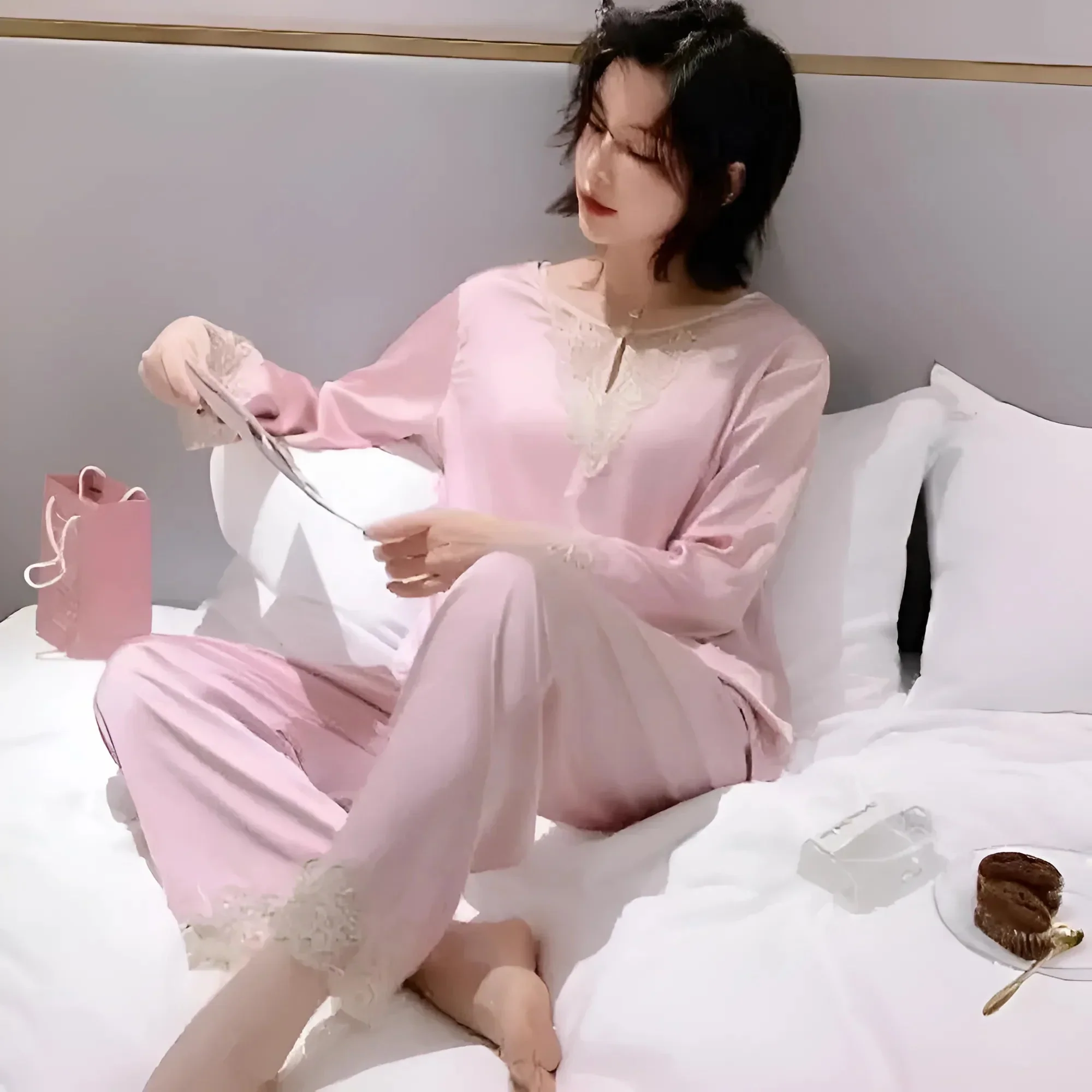 Concediti il lusso del comfort del nostro top a maniche lunghe in satin, splendidamente decorato con delicati dettagli in pizzo che aggiungono un tocco di eleganza al tuo guardaroba. Abbraccia il tuo stile in colori straordinari come il blu navy, il rosa e il rosso—acquista ora e sentiti favolosa ogni giorno!