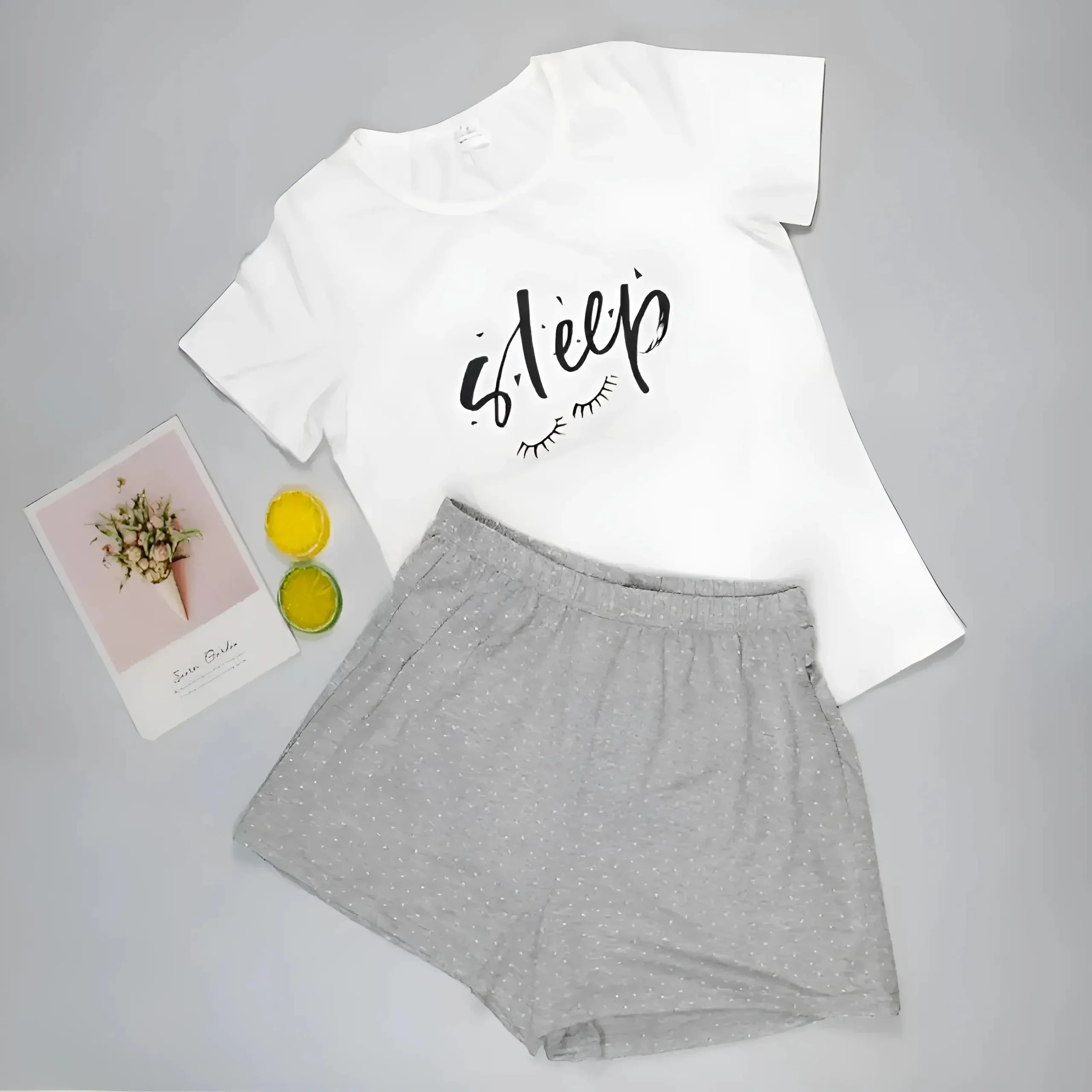 Abbraccia notti accoglienti con la nostra affascinante T-shirt “Sleep” e i divertenti shorts a pois, progettati per avvolgerti in comfort e stile. Concediti dolci sogni nel tuo colore preferito—acquista ora e crea la tua perfetta felicità per la buonanotte!