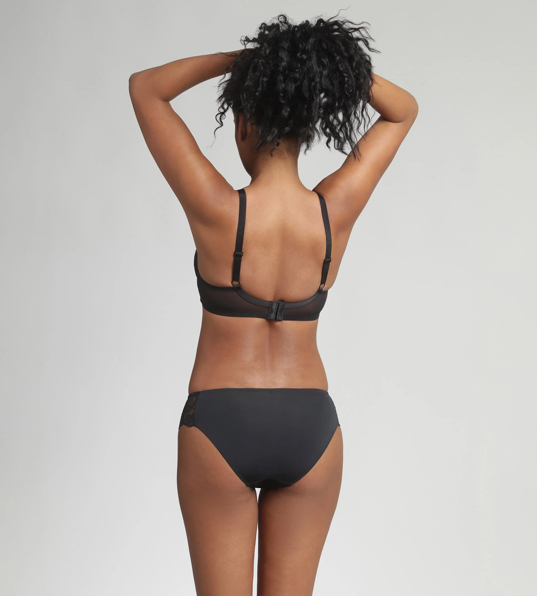 Scegli l’elegante reggiseno balconcino in pizzo nero! Abbinalo alle mutandine nere Essential Elegance per un look chic e femminile.