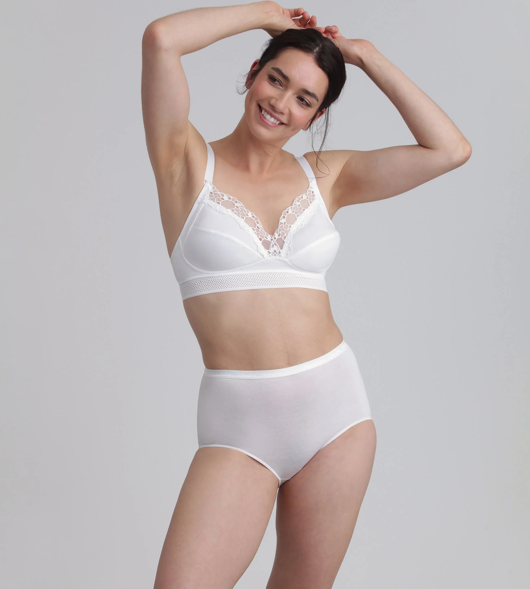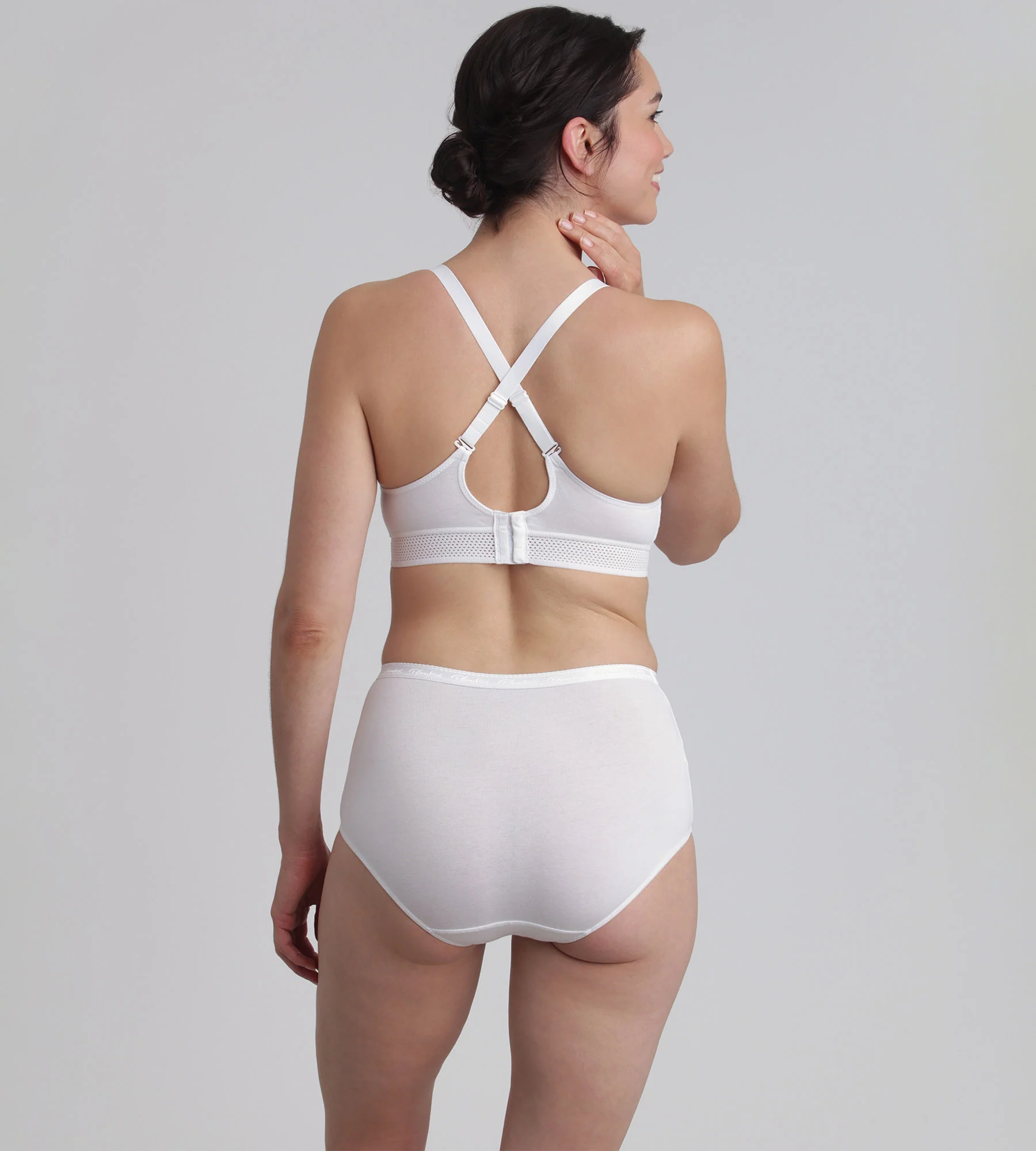 Prova il nuovo reggiseno Feel Good Support con 65% di cotone biologico! Per un completo intimo in cotone molto confortevole per tutta la giornata, indossalo con le mutandine bianche a vita media o vita alta della linea Cotton Stretch.