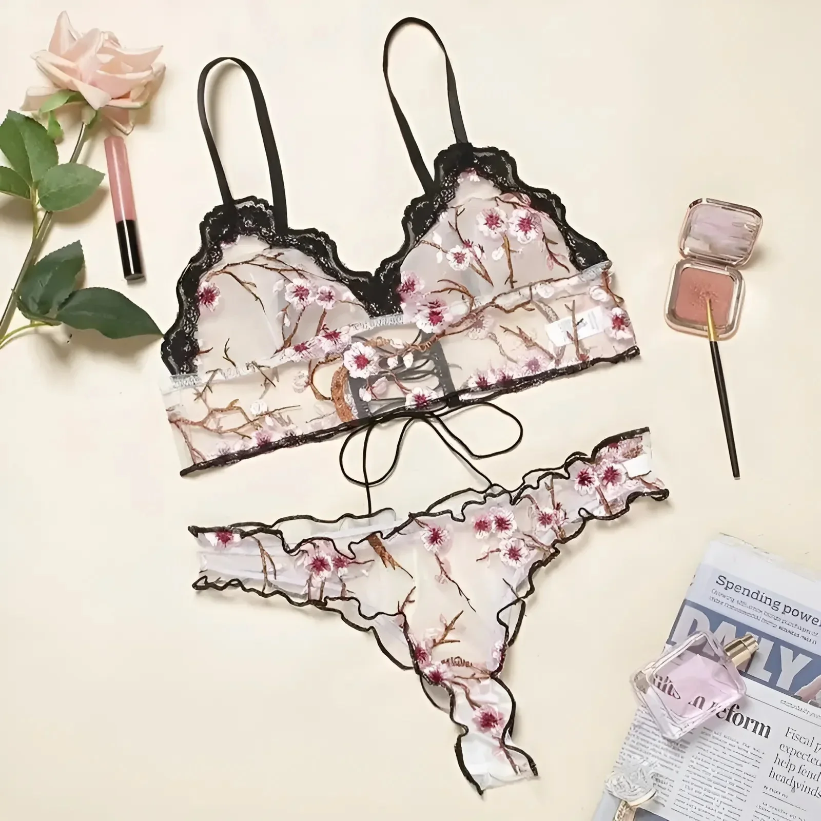 Set di Lingerie in Pizzo con Delicato Design Floreale