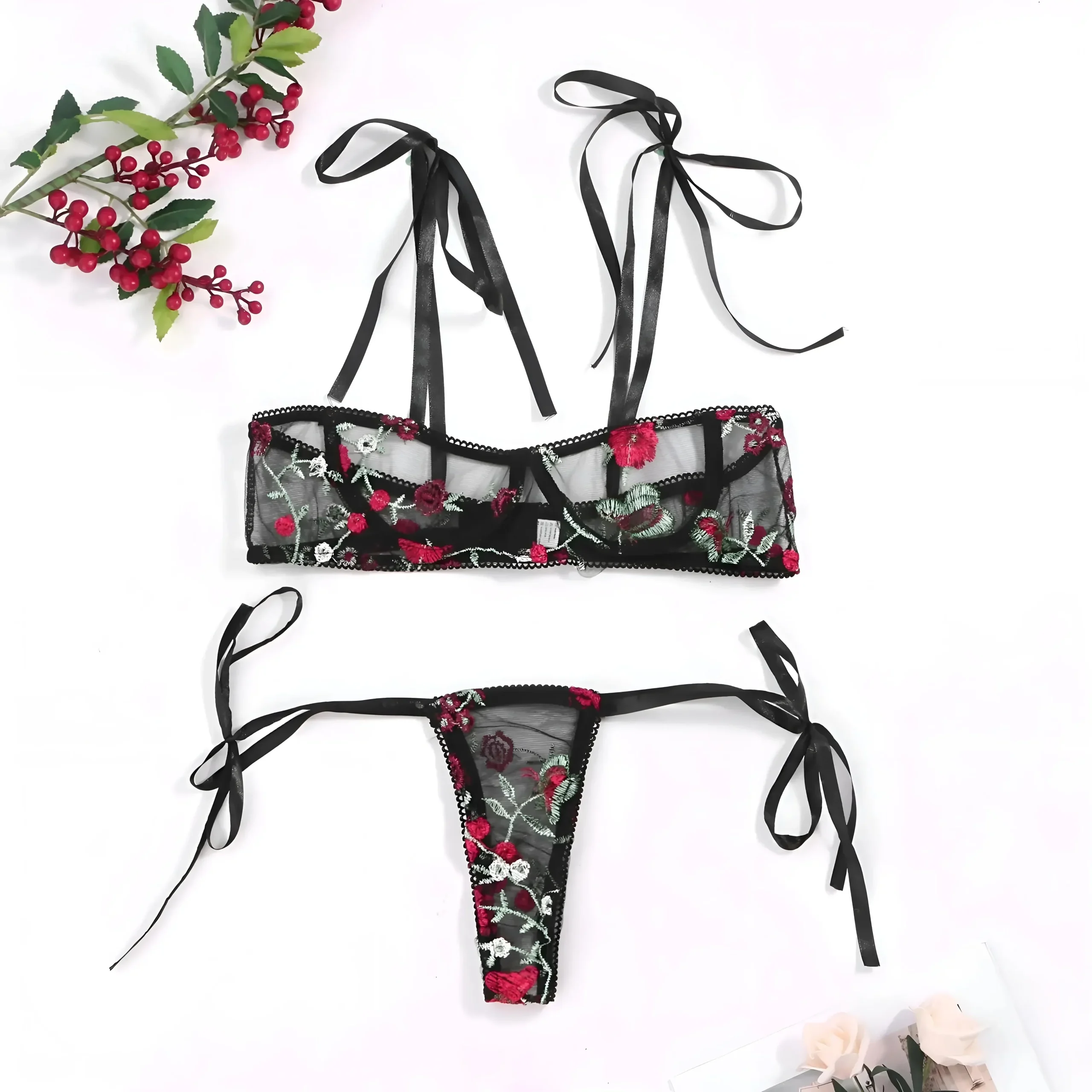 Set di Lingerie in Pizzo con Fiocchi Decorativi