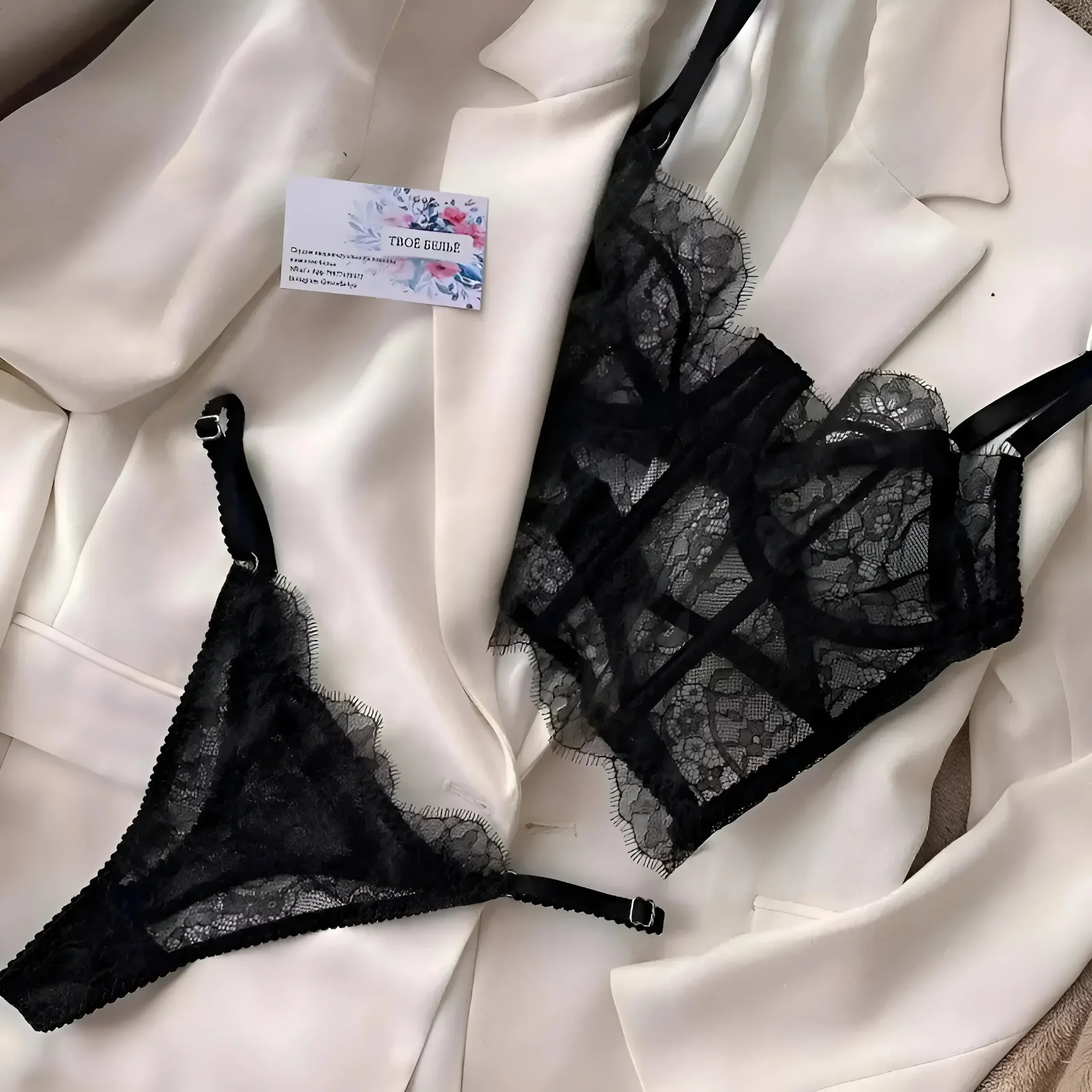 Abbraccia il tuo fascino interiore con il nostro straordinario set a due pezzi in pizzo nero, dotato di spalline regolabili e delicati dettagli trasparenti. Eleva la tua fiducia e rendi ogni momento indimenticabile—acquista ora e sentiti favolosa!