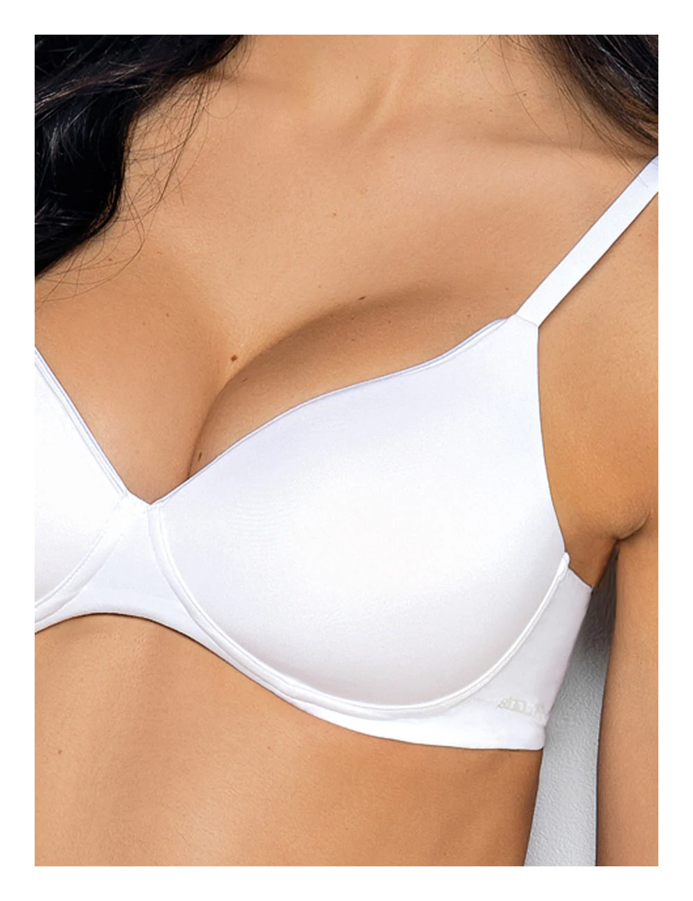 Reggiseno imbottito da donna, preformato con coppe graduate, liscio, tinta unita, senza ferretto, con stecche laterale, in microfibra, coppa B. Colori disponibili: bianco, cipria e nero. Taglie disponibili: 2, 3, 4 e 5. Composizione del prodotto: 87%poliammide e 17%elastam (tessuto), 100%poliestere (imbottitura). Marca: “SÌèLEI”. Codice: 1556.