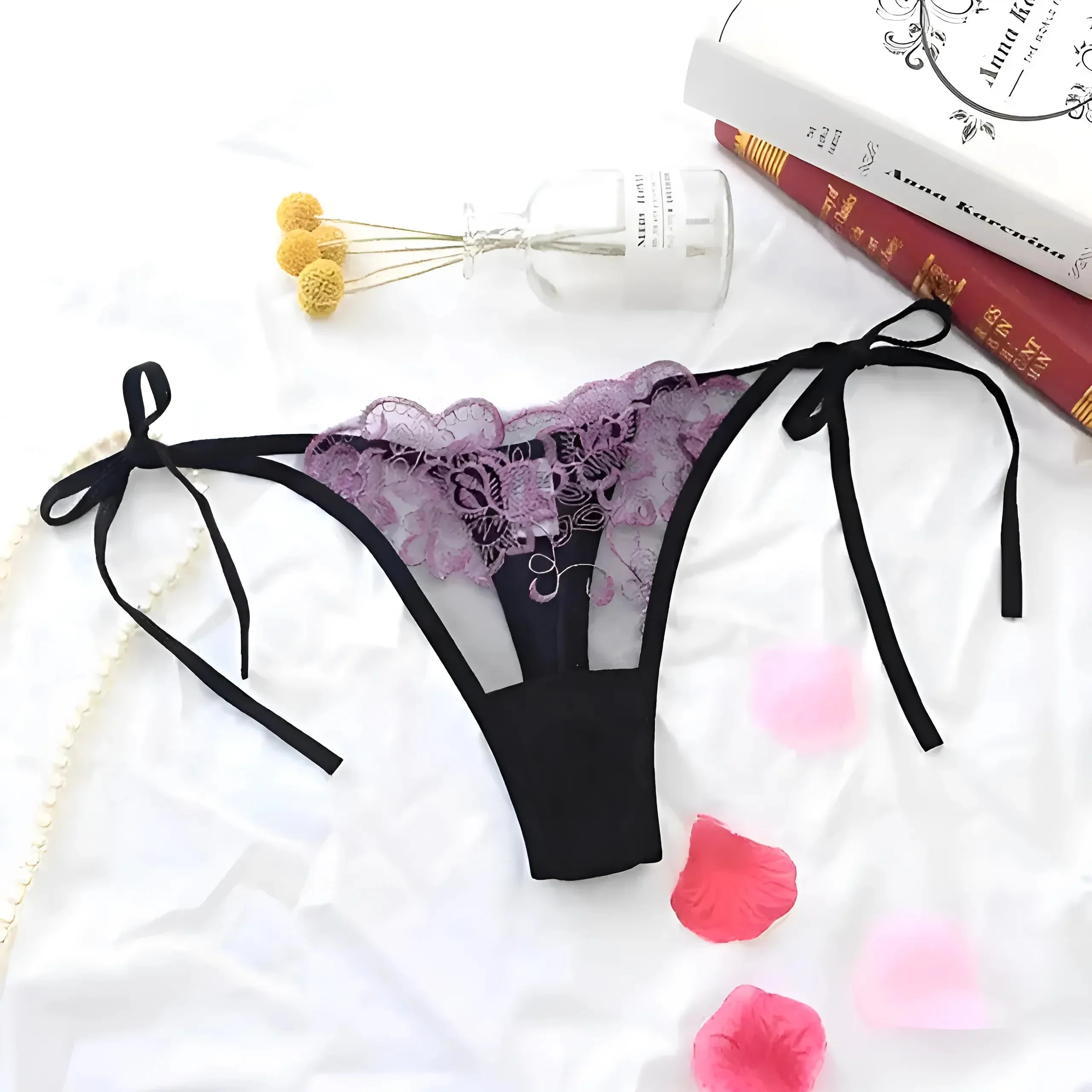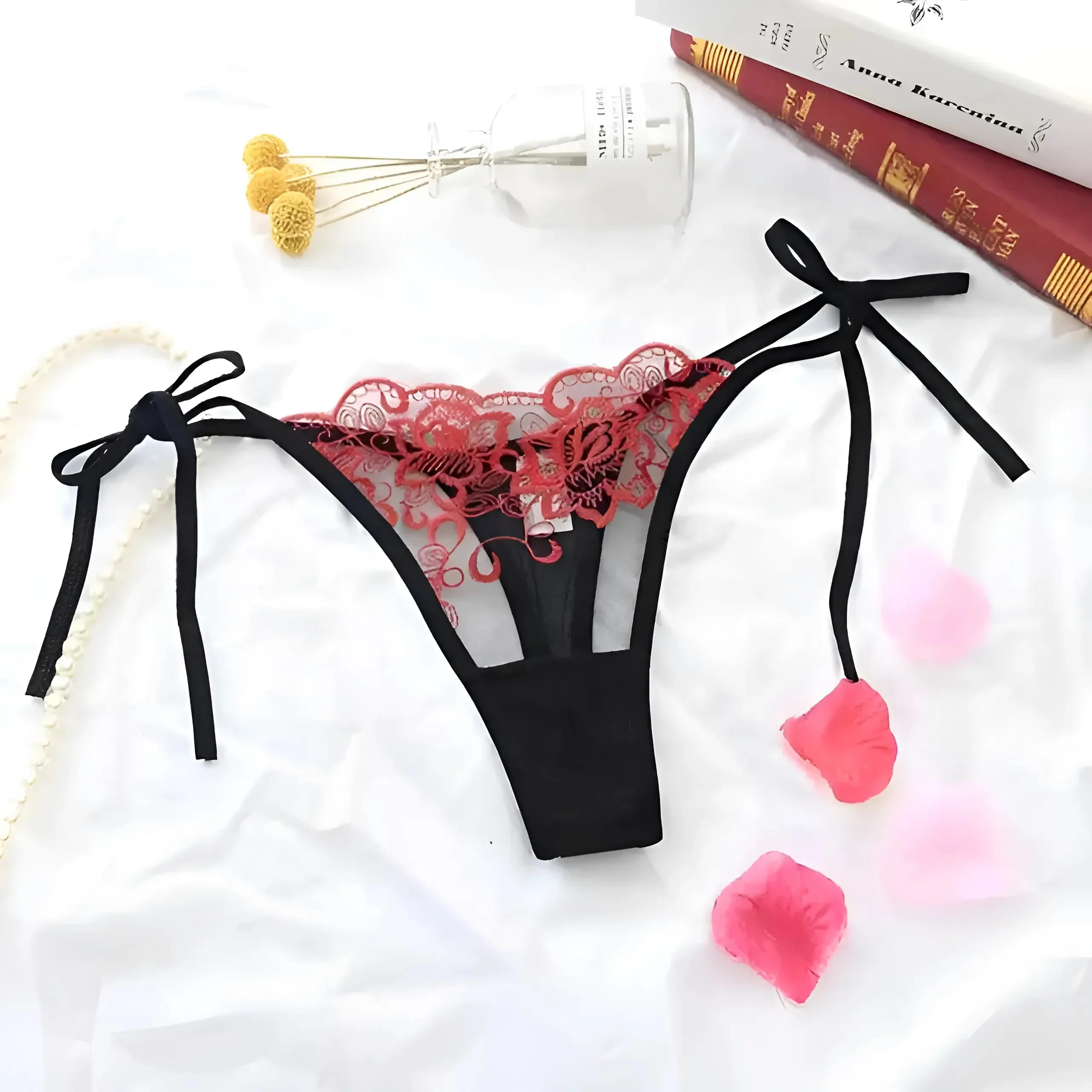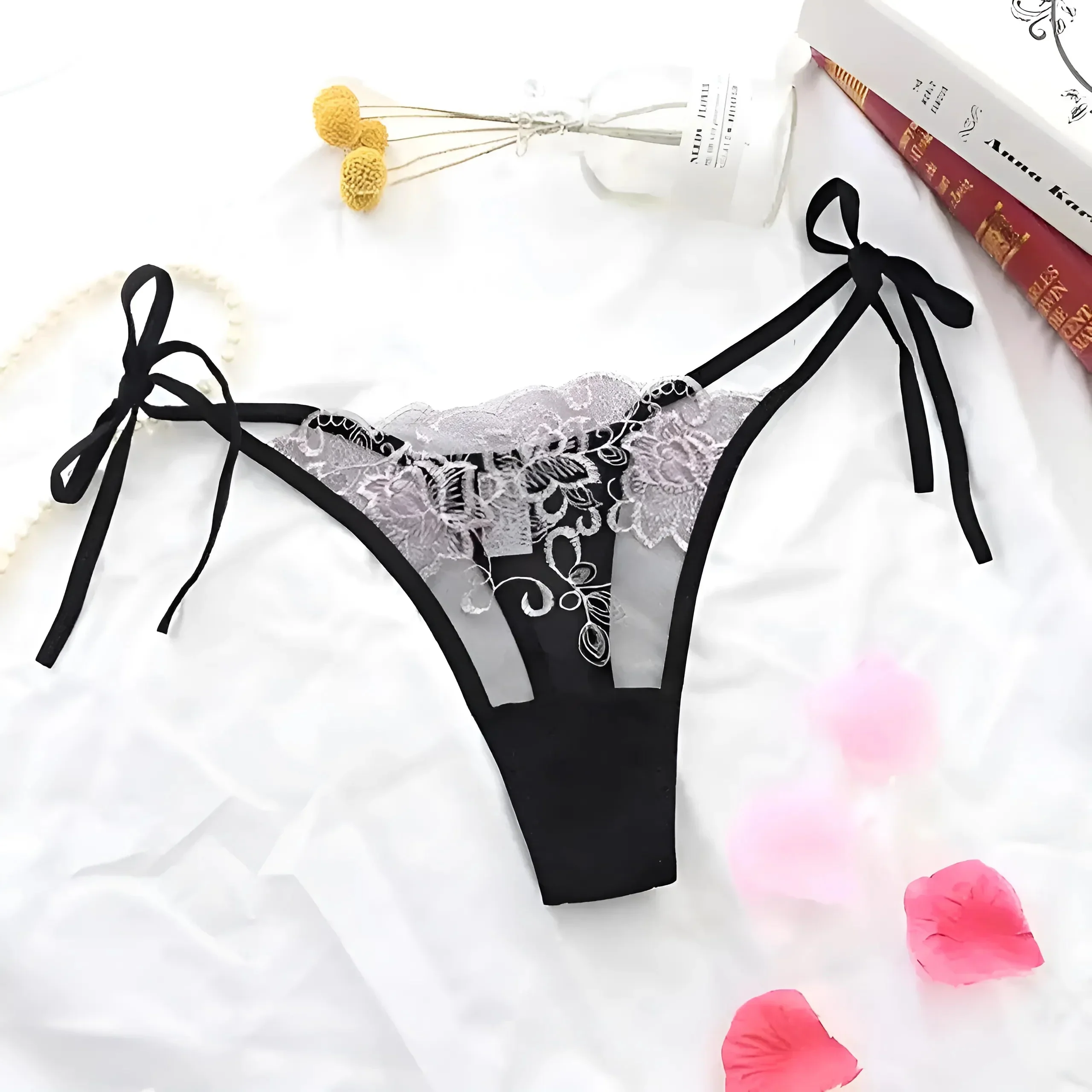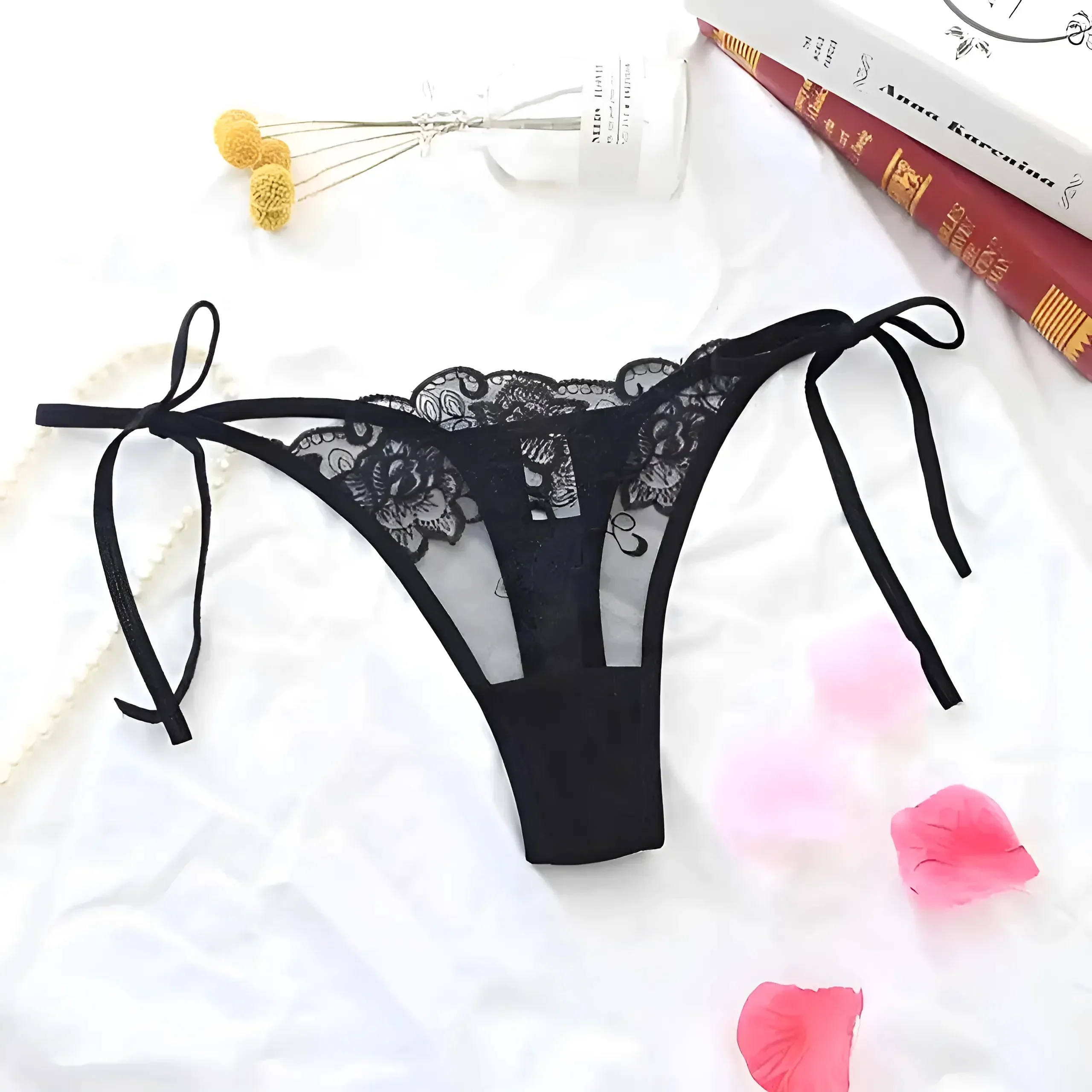 Abbraccia la tua fiducia interiore con il nostro straordinario perizoma in pizzo, caratterizzato da motivi intricati e legature laterali regolabili per una vestibilità perfetta. Scegli tra una bellissima gamma di colori e arricchisci la tua collezione di lingerie oggi stesso!