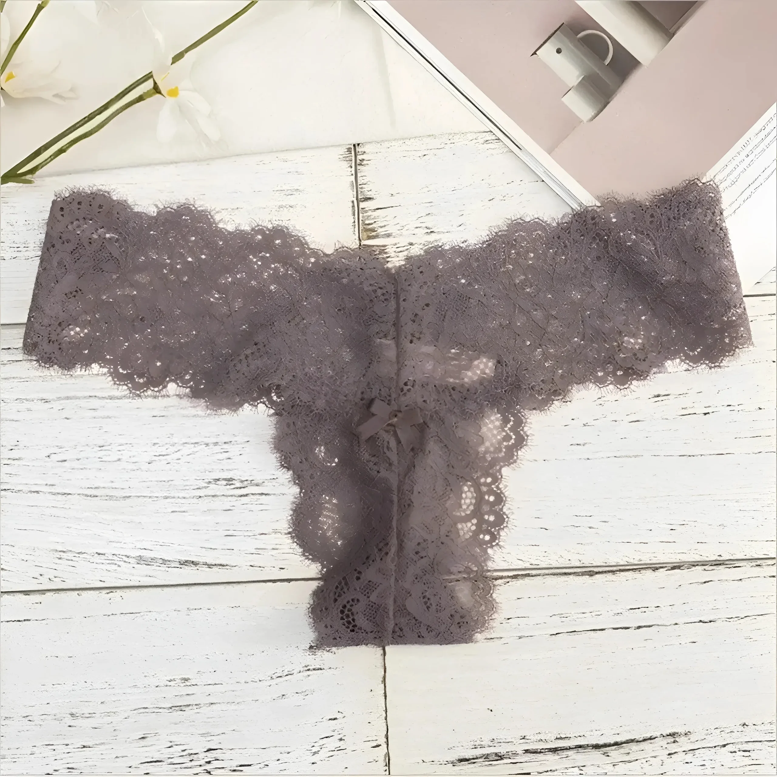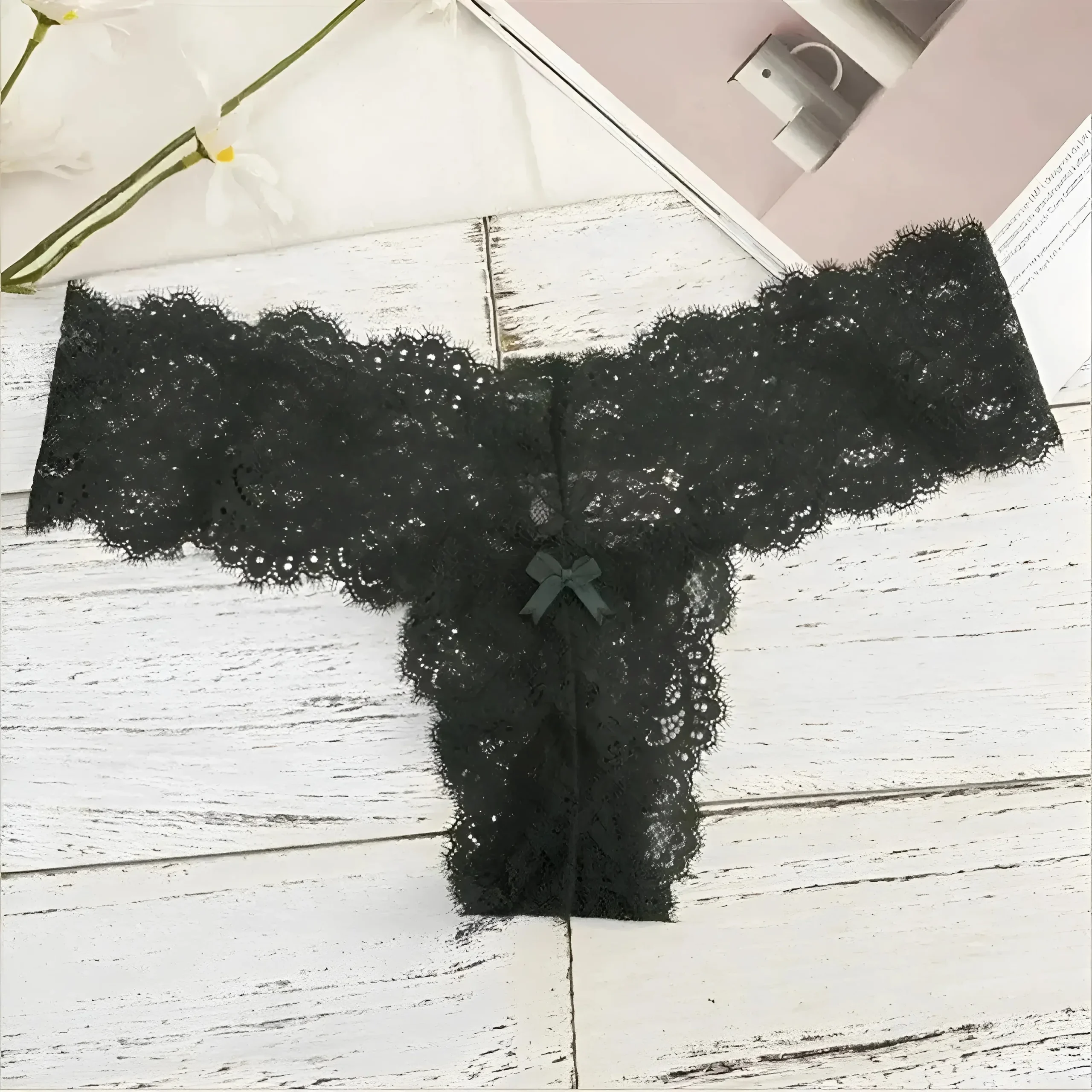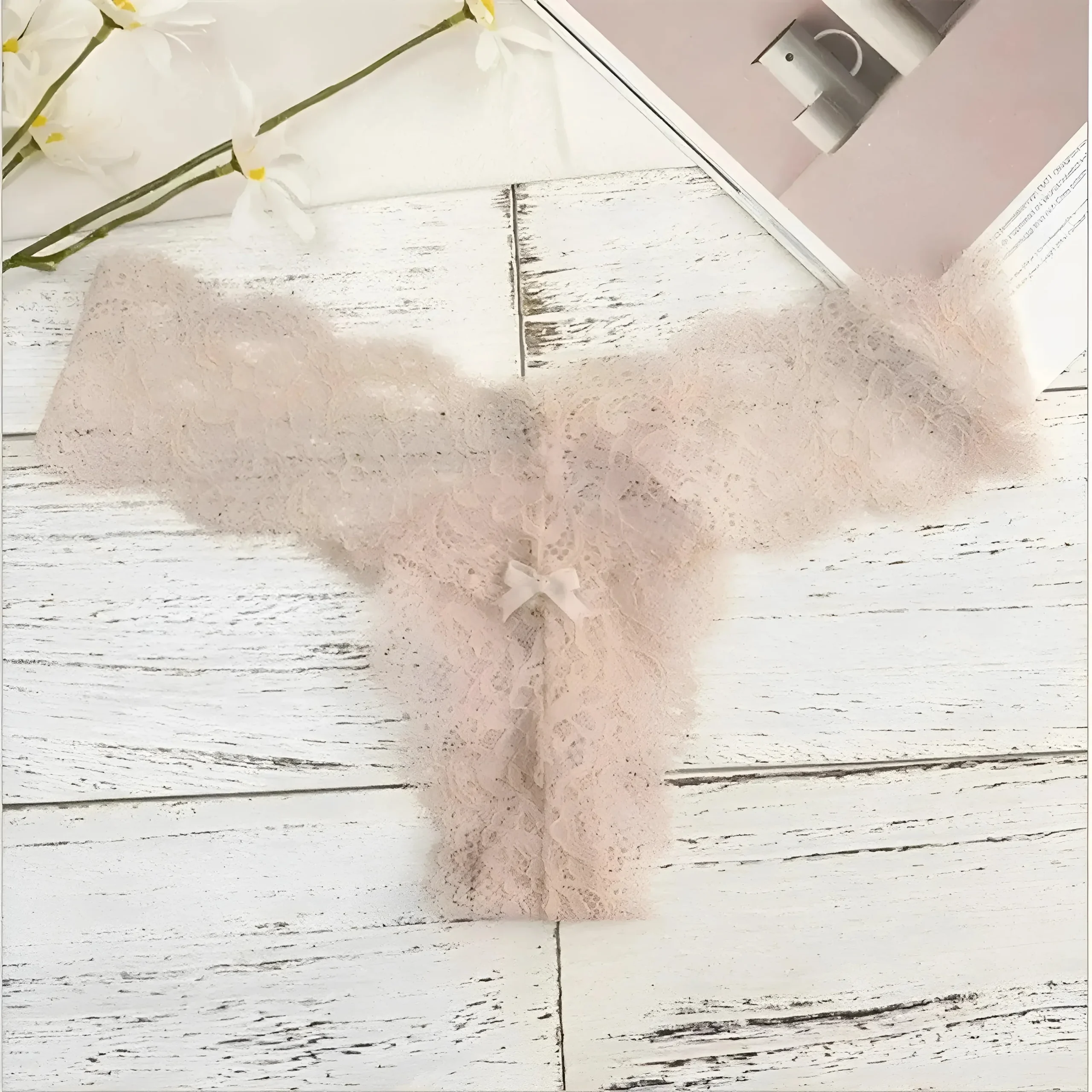 Concediti i nostri squisiti perizomi in pizzo, ognuno adornato con un delicato fiocco che aggiunge un tocco di fascino alla tua collezione. Scopri i nostri colori straordinari e eleva la tua eleganza quotidiana—perché meriti di sentirti bella dentro e fuori!