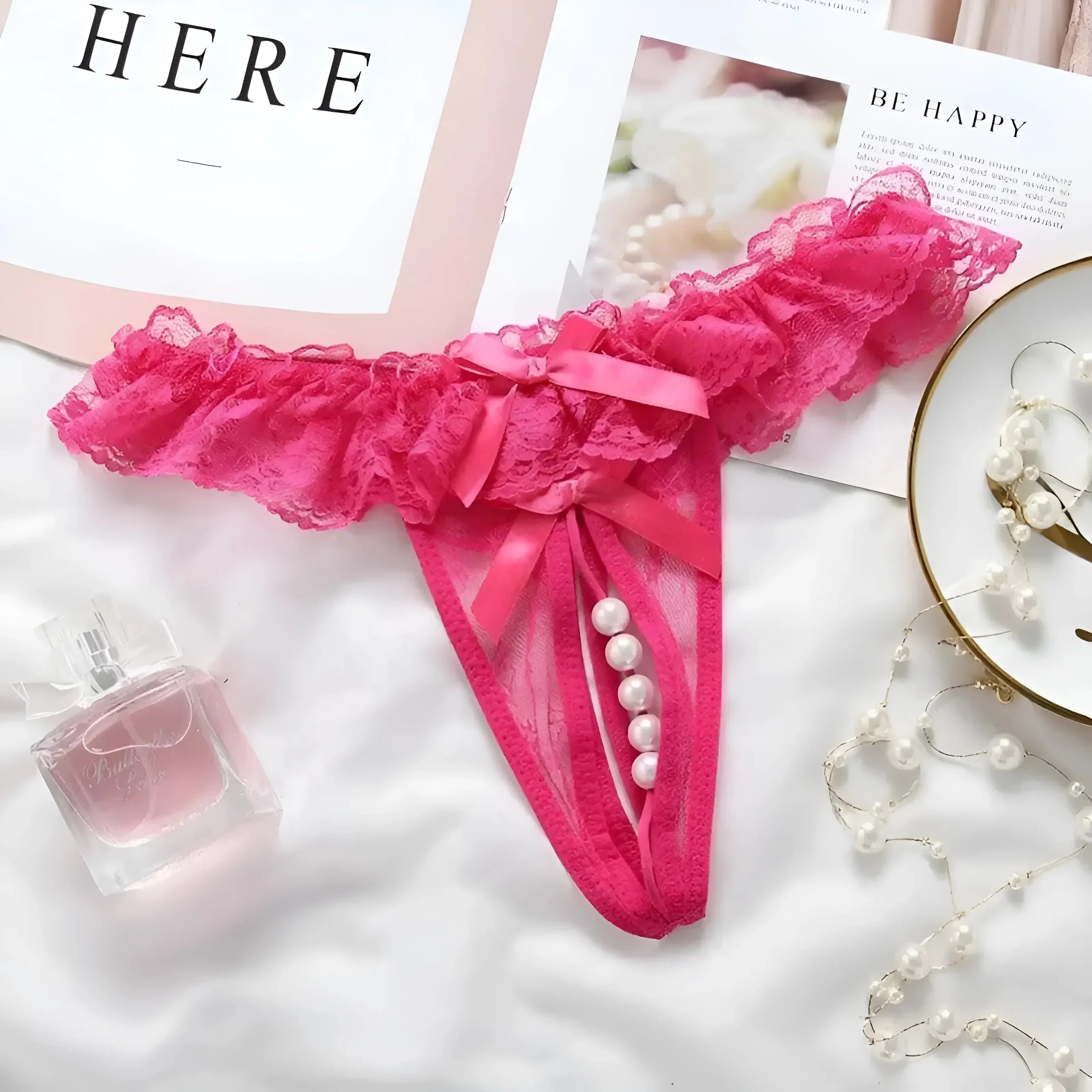 Design in pizzo con bordi arricciati Fiocco decorativo sul davanti Stile a stringa con decorazioni in perle Tessuto trasparente con motivi in pizzo intricati Colori disponibili: Nero, Rosa, Rosso, Blu Eleva la tua eleganza con il nostro straordinario design in pizzo, caratterizzato da delicati arricciamenti e un affascinante fiocco che aggiunge un tocco di fantasia. […]