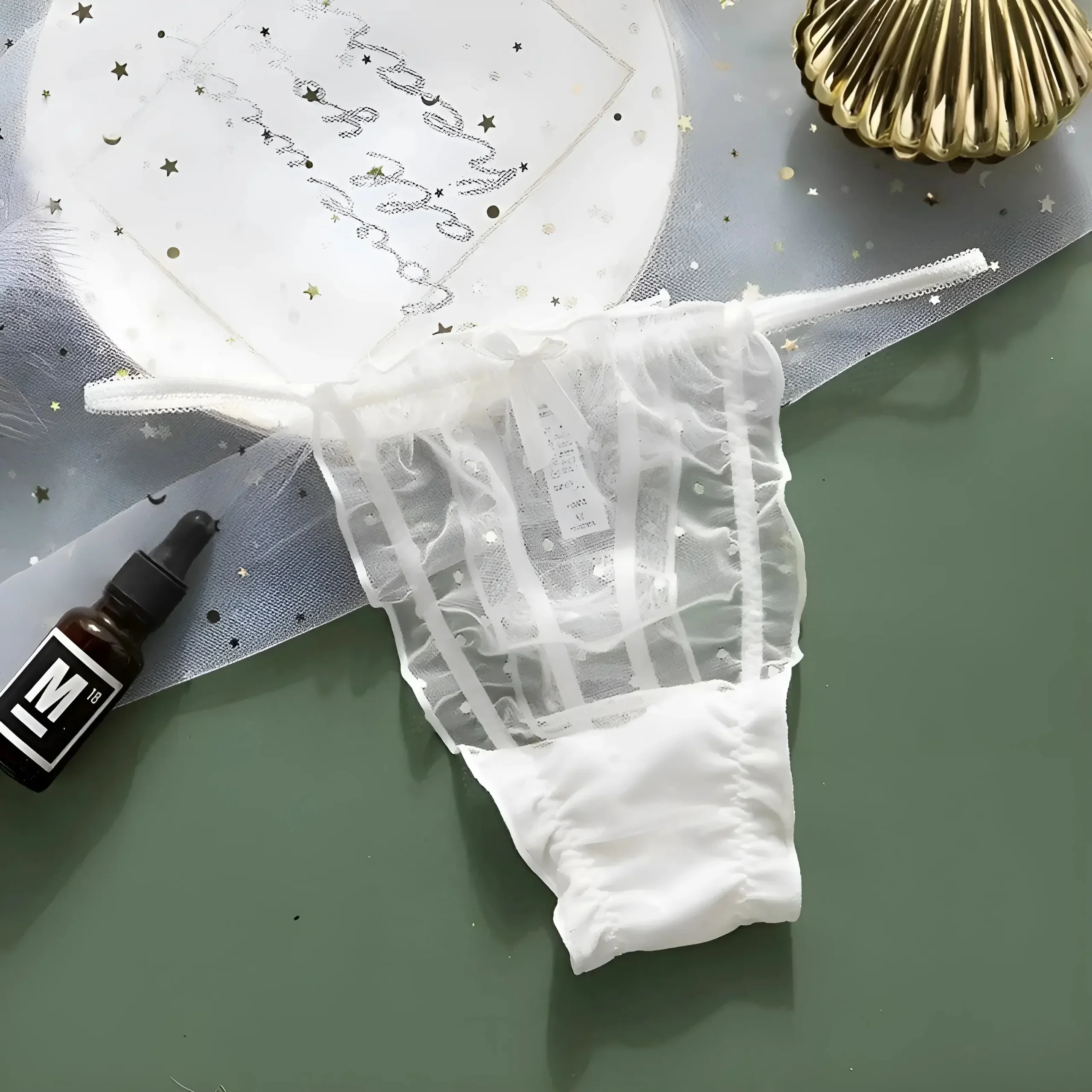 Tre perizomi in pizzo. Dettaglio arricciato sul retro di ogni perizoma. Tessuto trasparente con motivi a stelle sullo sfondo. Materiale morbido e delicato con un design femminile. Colori disponibili: nero, rosa, bianco. Concediti il delicato fascino dei nostri perizomi in pizzo, progettati per farti sentire bella e sicura ogni giorno. Scegli il tuo colore preferito […]