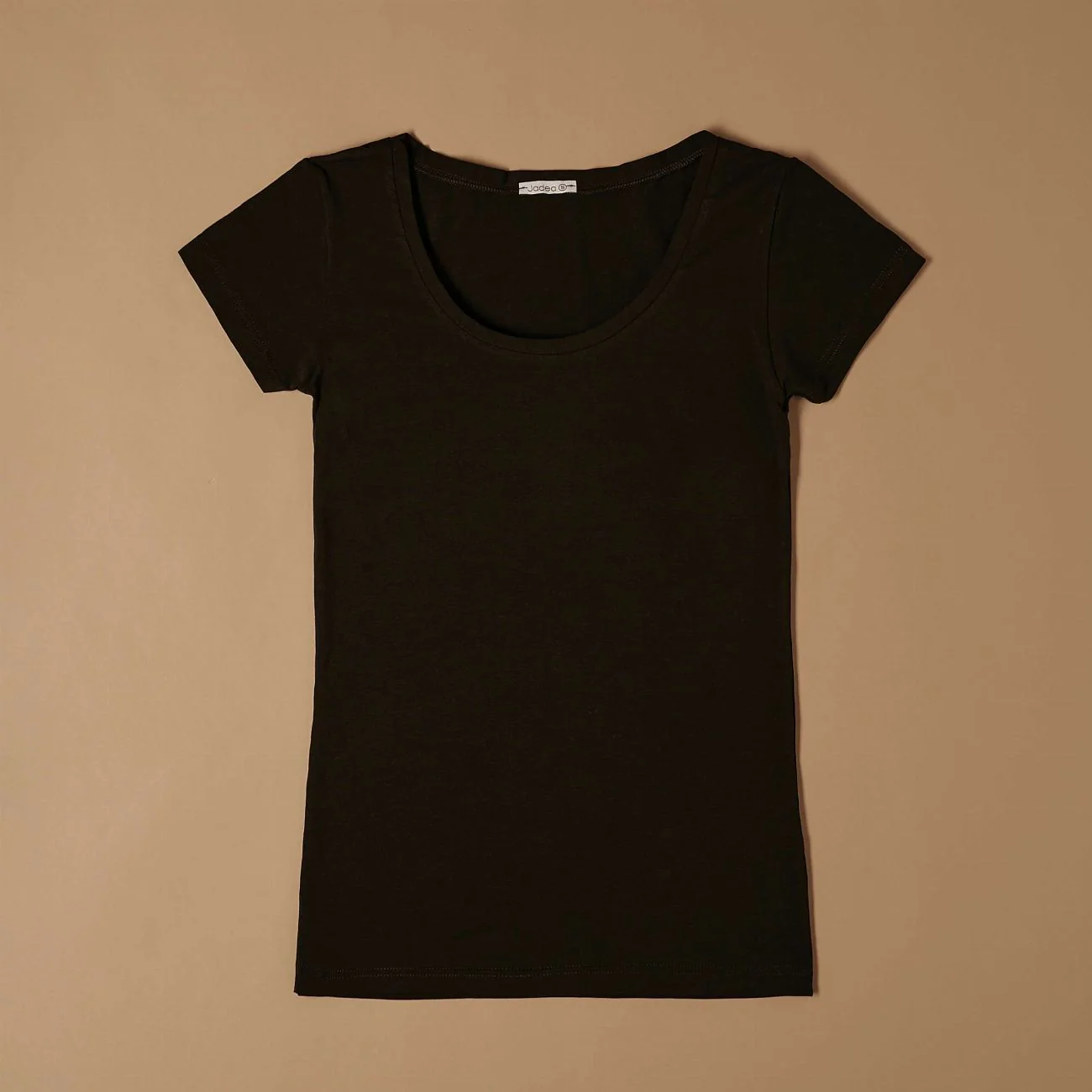 T-shirt con scollo tondo profondo e spalline sottili, realizzata in cotone elastico. Completamente adattabile alle tue forme, perfetta in ogni momento della giornata, comoda e piacevole sulla pelle. Ottima vestibilità e massimo comfort.